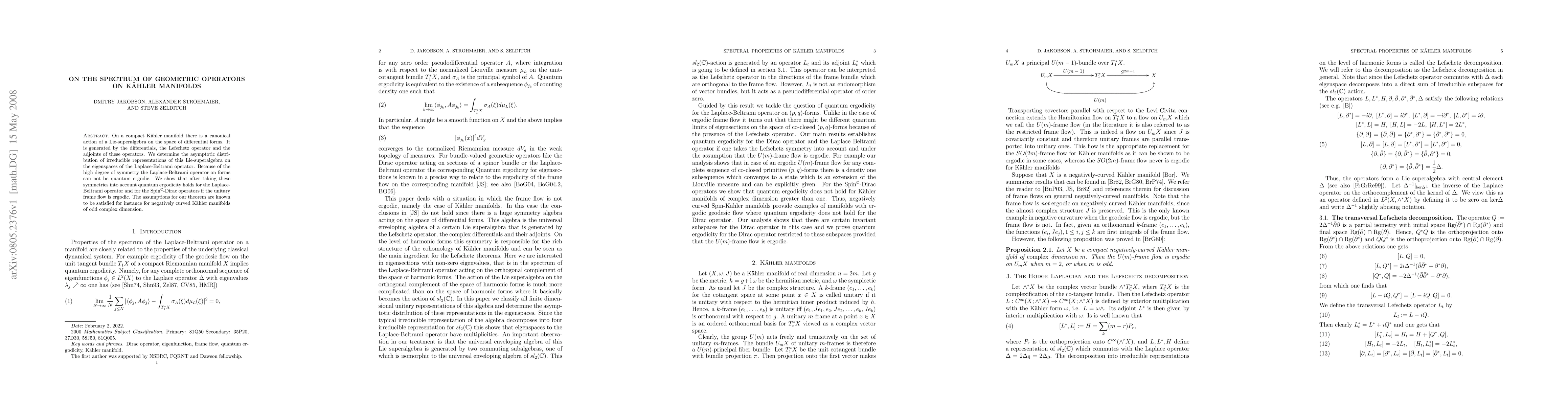 Researchers investigate the symmetries of Lie-superalgebras on K"ahler manifolds, finding quantum ergodicity for Laplace-Beltrami operators under specific conditions, with implications for understanding geometric operators on these manifolds.
