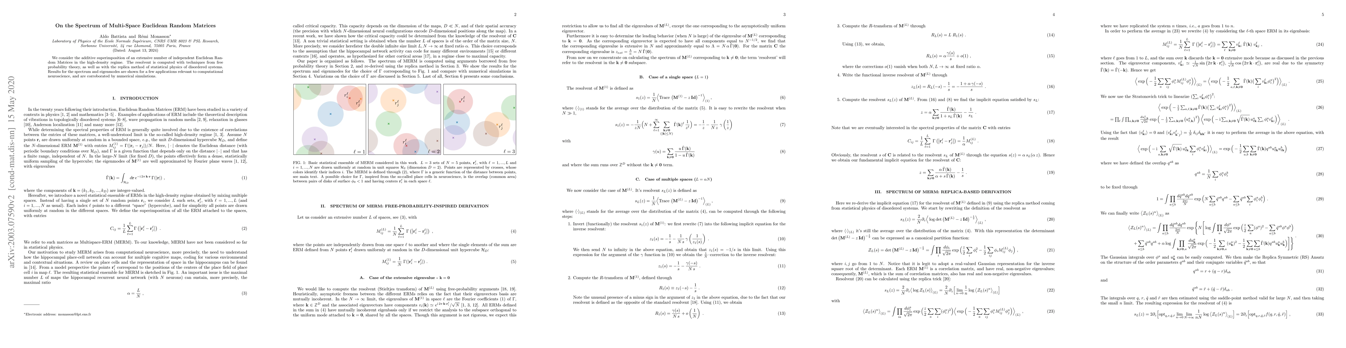 This paper explores the spectrum of additive superimpositions of numerous independent Euclidean Random Matrices in high-density conditions, employing free probability theory and replica methods. It presents results on the spectrum and eigenmodes, with applications to computational neuroscience, supported by numerical simulations.