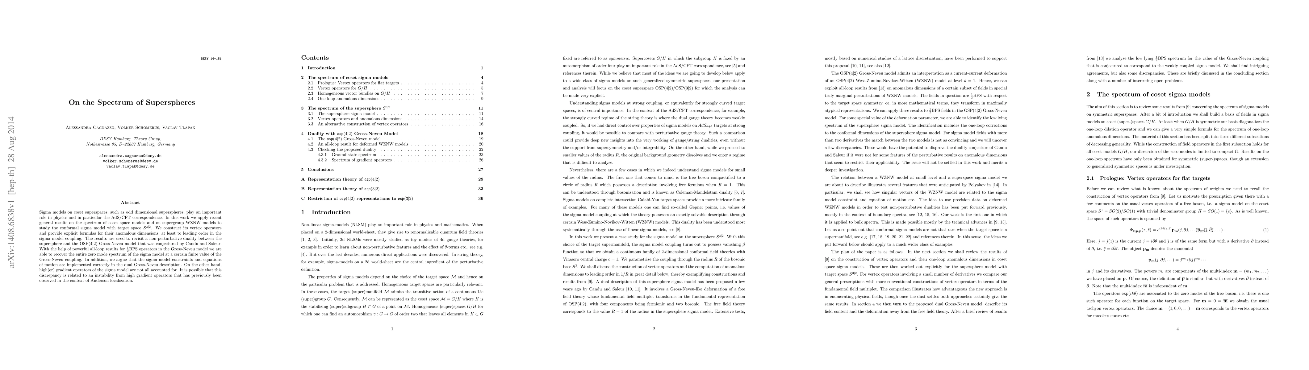 Sigma models on coset superspaces, such as odd dimensional superspheres, play an important role in physics and in particular the AdS/CFT correspondence. In this work we apply recent general results on the spectrum of coset space models and on supergroup WZNW models to study the conformal sigma model with target space S^{3|2}. We construct its vertex operators and provide explicit formulas for their anomalous dimensions, at least to leading order in the sigma model coupling. The results are used to revisit a non-perturbative duality between the supersphere and the OSP(4|2) Gross-Neveu model that was conjectured by Candu and Saleur. With the help of powerful all-loop results for 1/2 BPS operators in the Gross-Neveu model we are able to recover the entire zero mode spectrum of the sigma model at a certain finite value of the Gross-Neveu coupling. In addition, we argue that the sigma model constraints and equations of motion are implemented correctly in the dual Gross-Neveu description. On the other hand, high(er) gradient operators of the sigma model are not all accounted for. It is possible that this discrepancy is related to an instability from high gradient operators that has previously been observed in the context of Anderson localization.