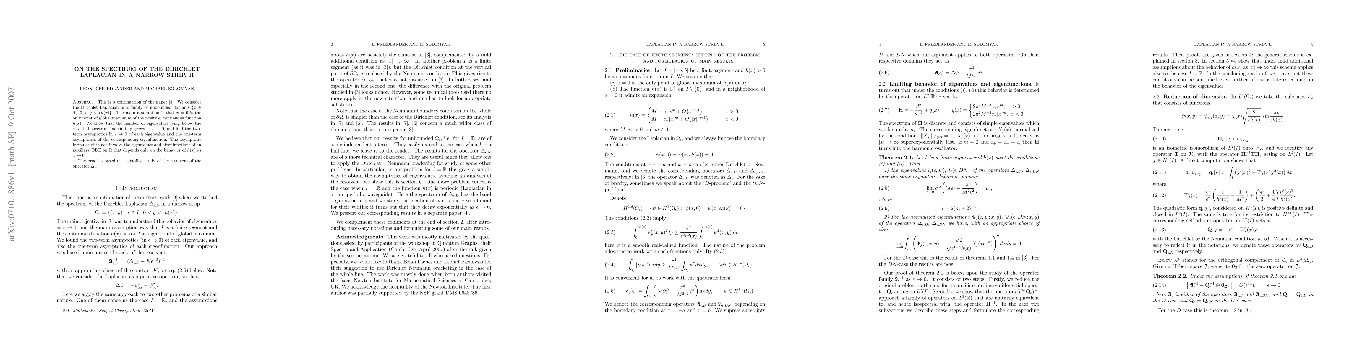 This paper investigates the asymptotic behavior of eigenvalues and eigenfunctions of the Dirichlet Laplacian in narrow, unbounded domains as the domain width approaches zero, focusing on those eigenvalues below the essential spectrum.