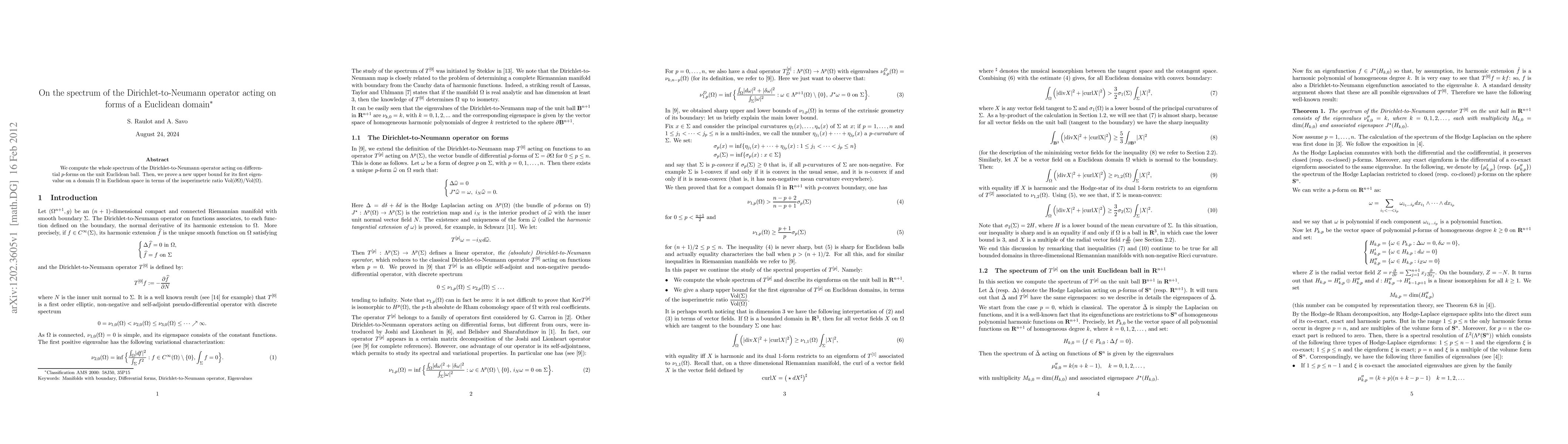 This paper computes the spectrum of the Dirichlet-to-Neumann operator for differential p-forms on the unit Euclidean ball and establishes a new upper bound for the first eigenvalue on any Euclidean domain in terms of the isoperimetric ratio.