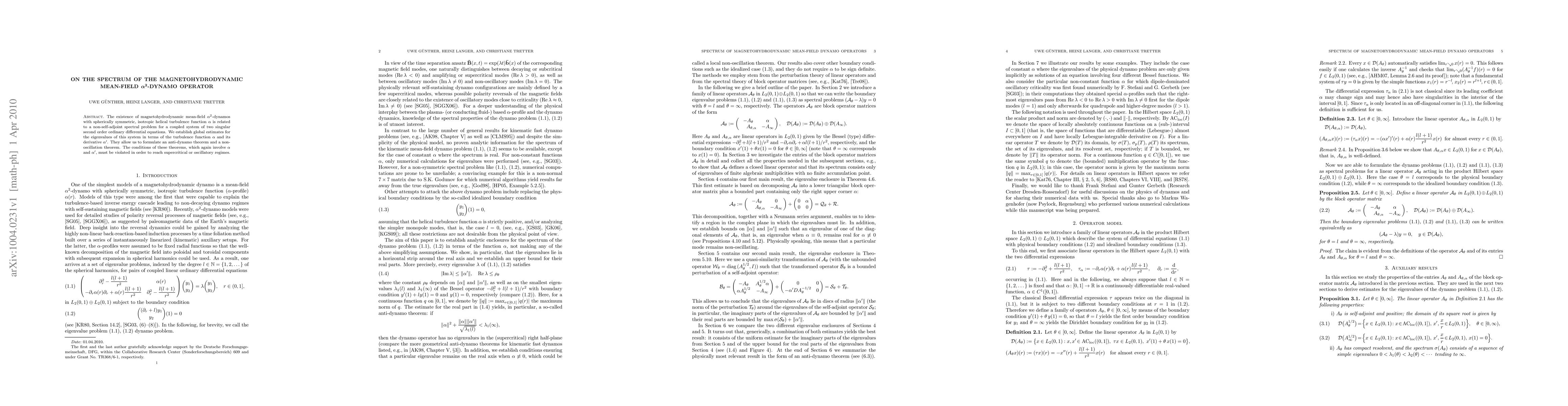 This paper investigates the spectral properties of the magnetohydrodynamic mean-field alpha^2-dynamo operator, establishing global estimates for its eigenvalues in terms of the turbulence function alpha and its derivative alpha'. The findings lead to the formulation of an anti-dynamo theorem and a non-oscillation theorem, highlighting conditions that must be violated for supercritical or oscillatory dynamo regimes.