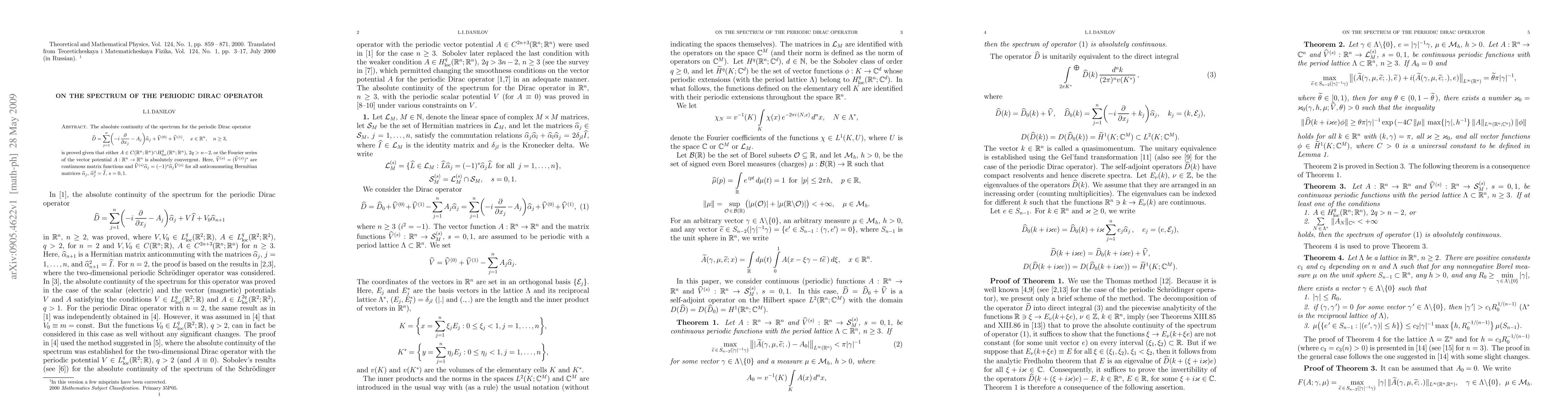 The periodic Dirac operator has an absolutely continuous spectrum when either the vector potential is in a specific function space or its Fourier series converges absolutely.