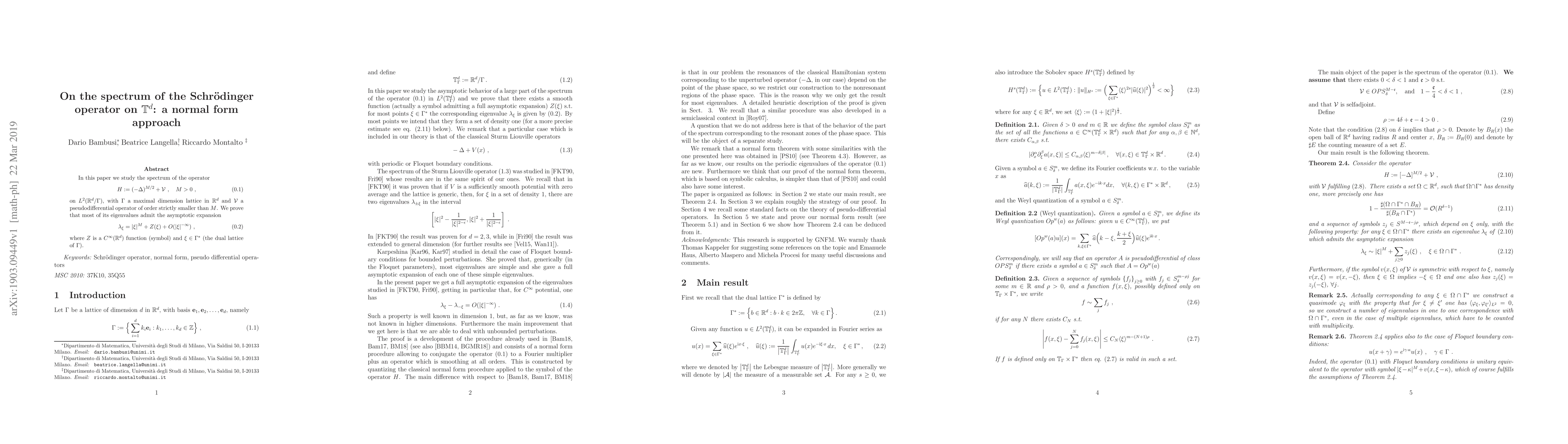 In this paper we study the spectrum of the operator \begin{equation} \label{ope} H:=(-\Delta)^{M/2}+\mathcal{V}\ , \quad M>0\ , \end{equation} on $L^2(\mathbb{R}^d/\Gamma)$, with $\Gamma$ a maximal dimension lattice in $\mathbb{R}^d$ and $\mathcal{V}$ a pseudodifferential operator of order strictly smaller than $M$. We prove that most of its eigenvalues admit the asymptotic expansion \begin{equation} \label{sim} \lambda_\xi=|\xi|^M+Z(\xi)+O(\left|\xi\right|^{-\infty})\ , \end{equation} where $Z$ is a $C^\infty(\mathbb{R}^d)$ function (symbol) and $\xi\in\Gamma^*$ (the dual lattice of $\Gamma$).