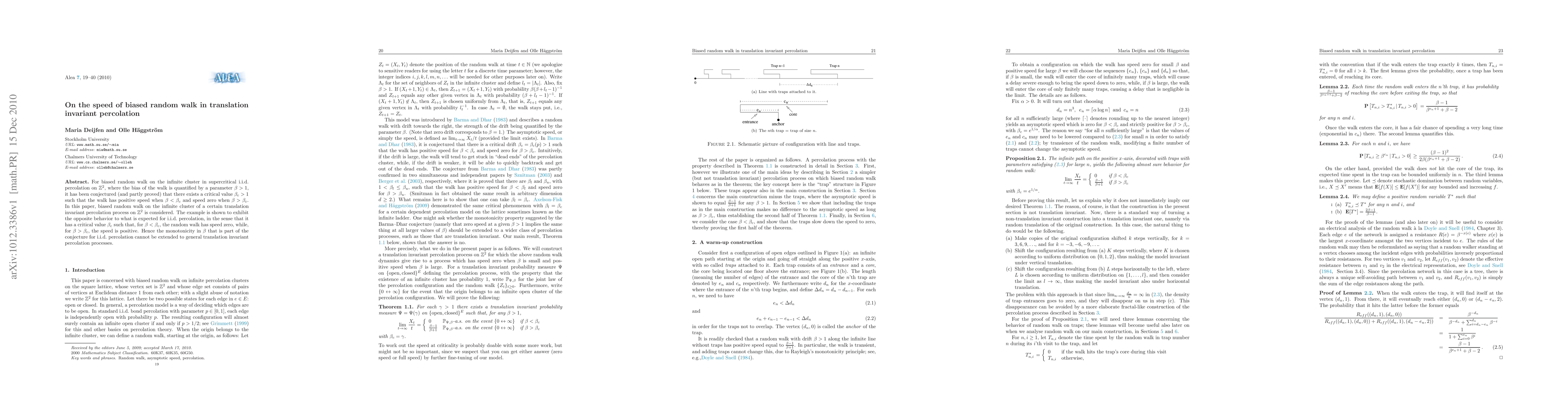 This paper investigates biased random walk on the infinite cluster in a translation invariant percolation process on $\Z^2$, finding that it exhibits a non-monotonic behavior in contrast to supercritical i.i.d. percolation, where the speed of the walk is positive for $\beta<\beta_c$ and zero for $\beta>\beta_c$.