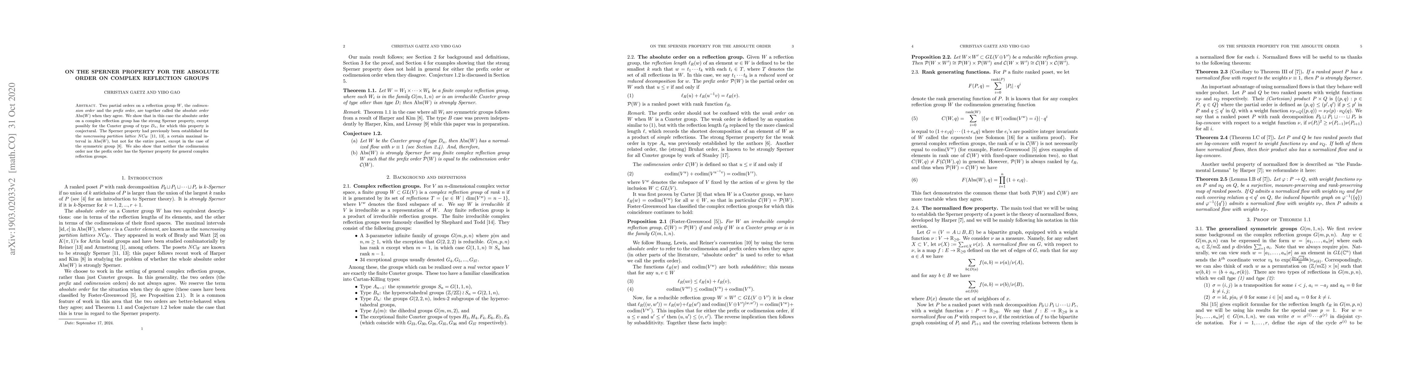 This paper demonstrates that the absolute order on complex reflection groups, combining the codimension and prefix orders, exhibits the strong Sperner property, except for the Coxeter group of type $D_n$. It also reveals that neither the codimension nor the prefix order alone possesses the Sperner property for general complex reflection groups.