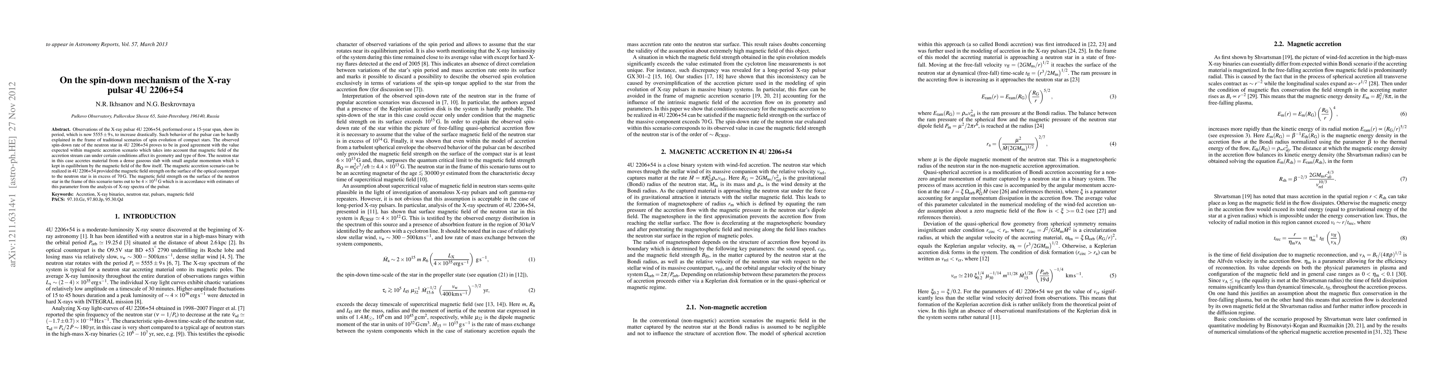 The X-ray pulsar 4U 2206+54 shows an unusual spin-down rate that agrees with predictions from the magnetic accretion scenario, where a strong surface magnetic field affects the flow's geometry and type.