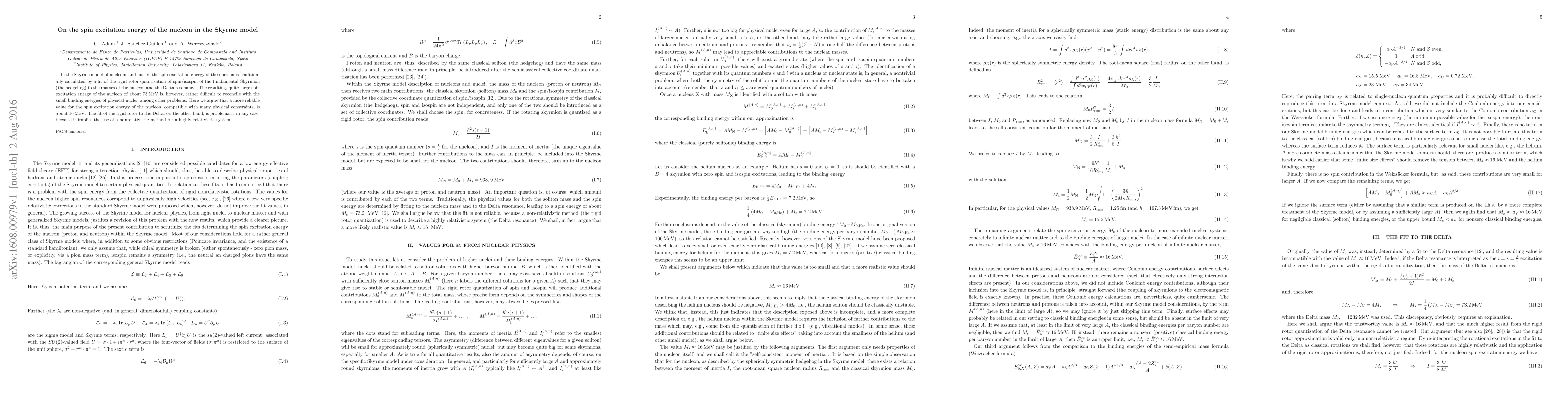 In the Skyrme model of nucleons and nuclei, the spin excitation energy of the nucleon is traditionally calculated by a fit of the rigid rotor quantization of spin/isospin of the fundamental Skyrmion (the hedgehog) to the masses of the nucleon and the Delta resonance. The resulting, quite large spin excitation energy of the nucleon of about $ 73\, \mbox{MeV}$ is, however, rather difficult to reconcile with the small binding energies of physical nuclei, among other problems. Here we argue that a more reliable value for the spin excitation energy of the nucleon, compatible with many physical constraints, is about $ 16\, \mbox{MeV}$. The fit of the rigid rotor to the Delta, on the other hand, is problematic in any case, because it implies the use of a nonrelativistic method for a highly relativistic system.
