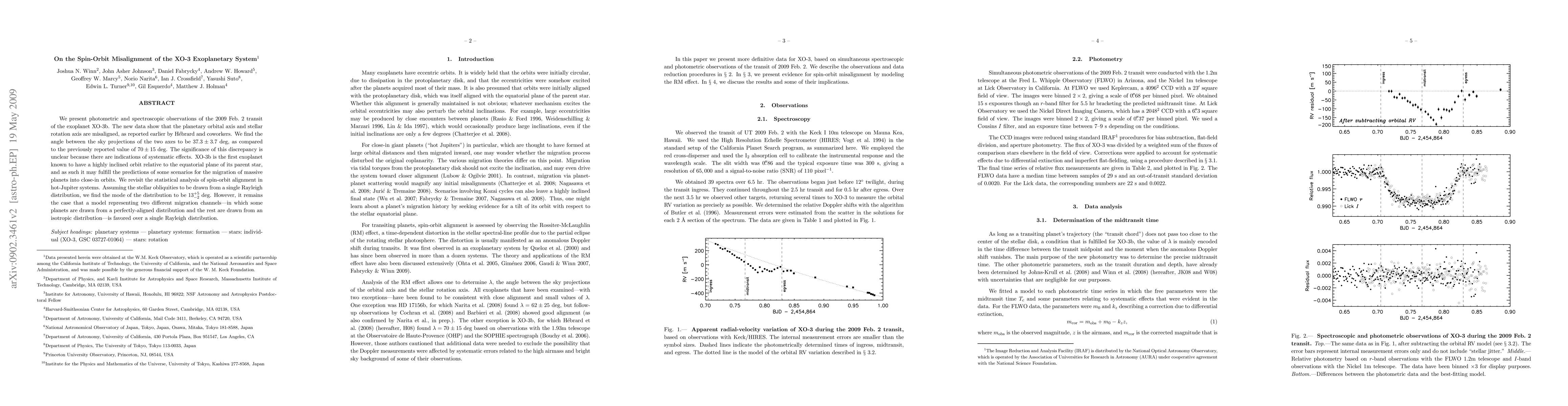 New observations of exoplanet XO-3b show that its planetary orbital axis and stellar rotation axis are misaligned, with an angle of 37.3 degrees, contradicting earlier findings.
