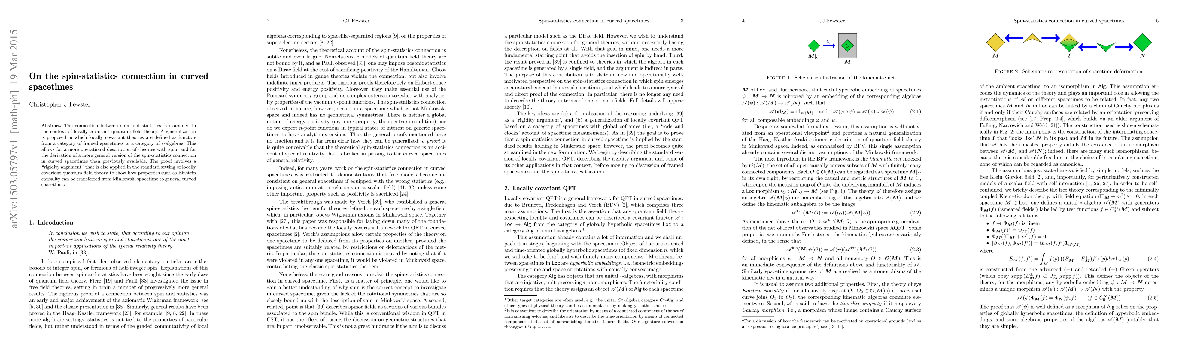 The paper proposes a generalization of locally covariant quantum field theories, defining them as functors from spacetime categories, to derive a broader spin-statistics connection in curved spacetimes. The methodology includes a "rigidity argument" that extends Einstein causality properties from Minkowski to general curved spacetimes.