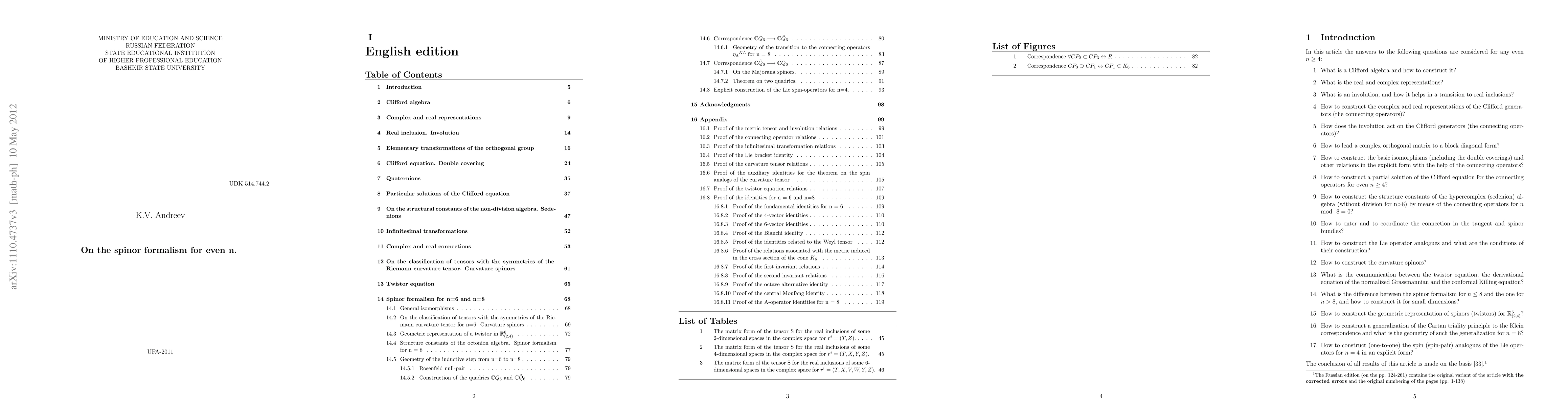Researchers developed a spinor formalism for even n dimensions, extending the Clifford equation to include pair-spinors and connections, with implications for hypercomplex algebras and curvature spinors.