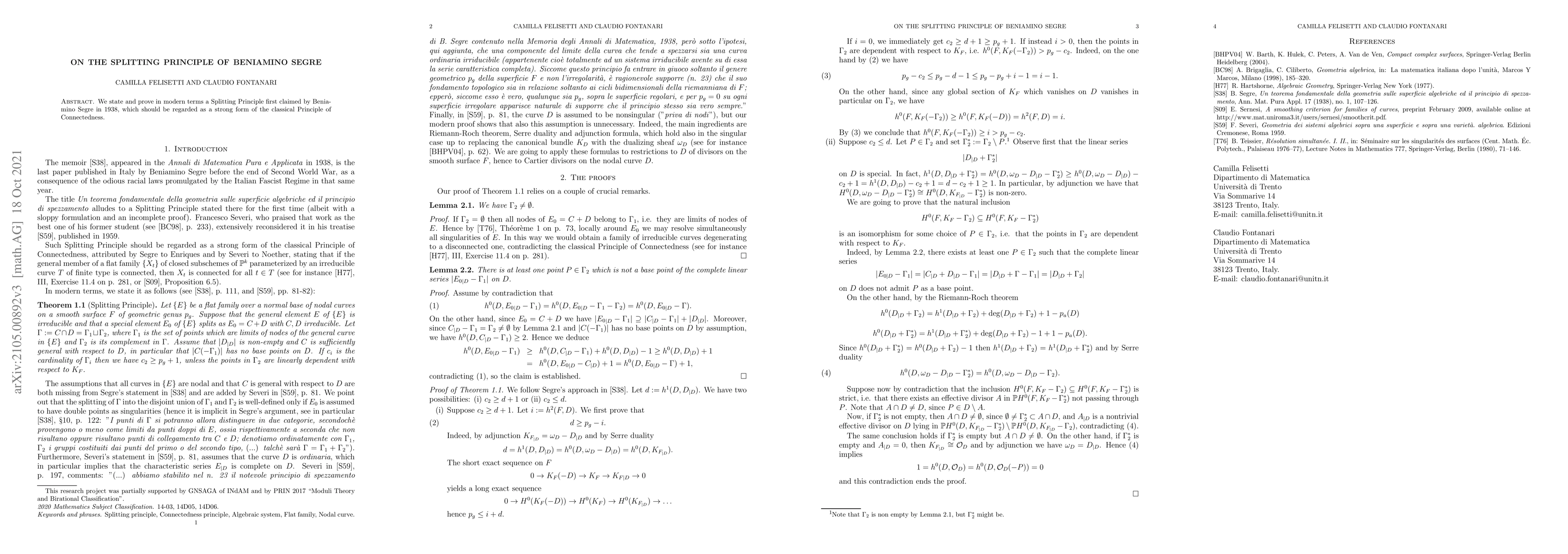 We state and prove in modern terms a Splitting Principle first claimed by Beniamino Segre in 1938, which should be regarded as a strong form of the classical Principle of Connectedness.