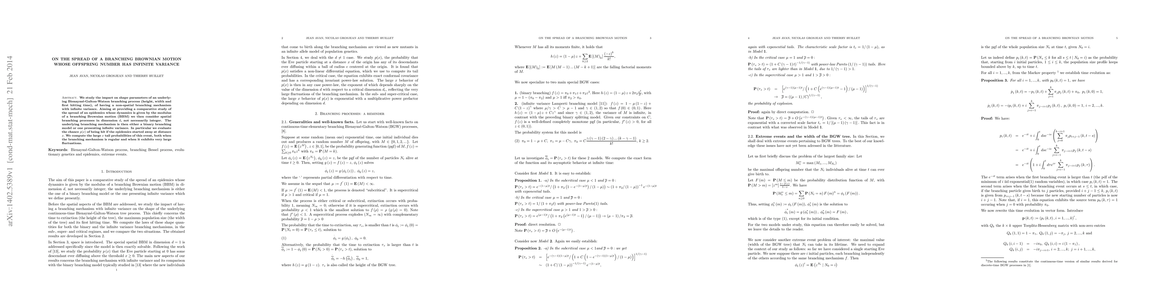 This paper investigates the effects of infinite variance in the offspring distribution of a Bienaymé-Galton-Watson process on shape parameters like height, width, and first hitting time. It also examines the spread of epidemics modeled by branching Brownian motion, comparing regular and highly fluctuating branching mechanisms.
