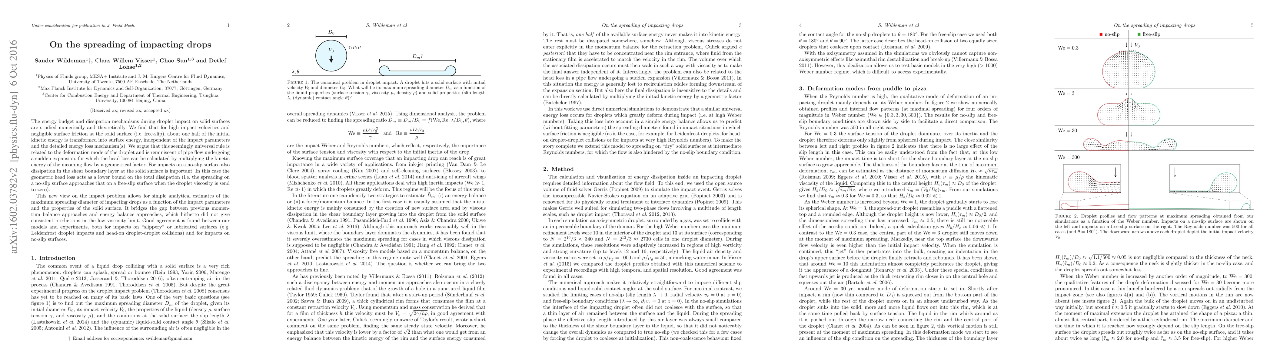 The energy budget and dissipation mechanisms during droplet impact on solid surfaces are studied numerically and theoretically. We find that for high impact velocities and negligible surface friction at the solid surface (i.e. free-slip), about one half of the initial kinetic energy is transformed into surface energy, independent of the impact parameters and the detailed energy loss mechanism(s). We argue that this seemingly universal rule is related to the deformation mode of the droplet and is reminiscent of pipe flow undergoing a sudden expansion, for which the head loss can be calculated by multiplying the kinetic energy of the incoming flow by a geometrical factor. For impacts on a no-slip surface also dissipation in the shear boundary layer at the solid surface is important. In this case the geometric head loss acts as a lower bound on the total dissipation (i.e. the spreading on a no-slip surface approaches that on a free-slip surface when the droplet viscosity is send to zero). This new view on the impact problem allows for simple analytical estimates of the maximum spreading diameter of impacting drops as a function of the impact parameters and the properties of the solid surface. It bridges the gap between previous momentum balance approaches and energy balance approaches, which hitherto did not give consistent predictions in the low viscosity limit. Good agreement is found between our models and experiments, both for impacts on "slippery" or lubricated surfaces (e.g. Leidenfrost droplet impacts and head-on droplet-droplet collisions) and for impacts on no-slip surfaces.