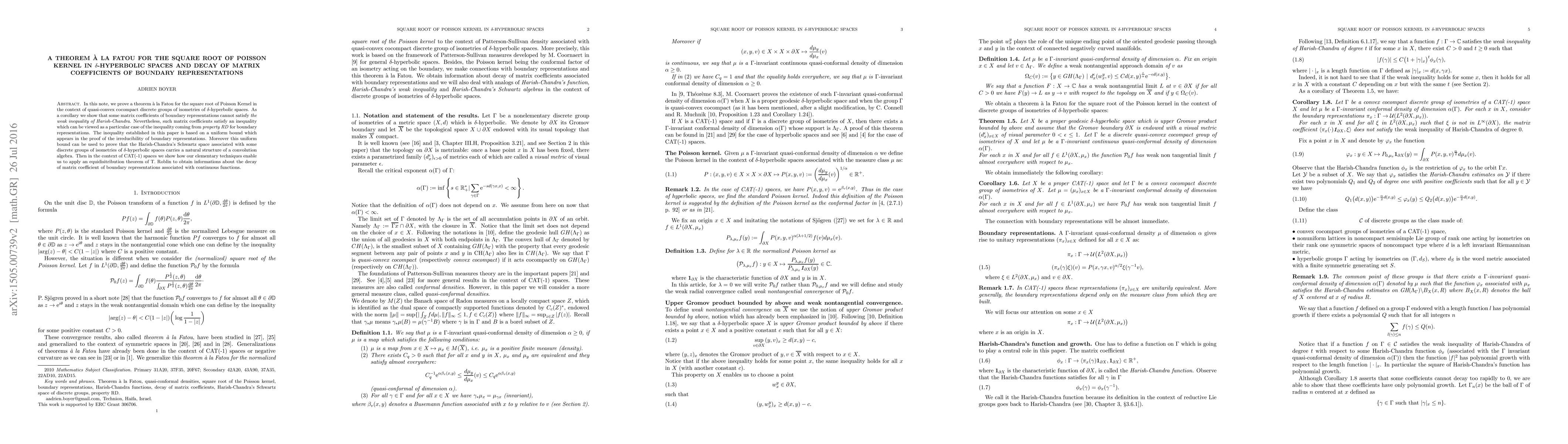 This paper proves a theorem for the square root of Poisson kernel in $ heta$-hyperbolic spaces, showing that some boundary representations have matrix coefficients that cannot satisfy the Harish-Chandra weak inequality but do satisfy an alternative inequality.