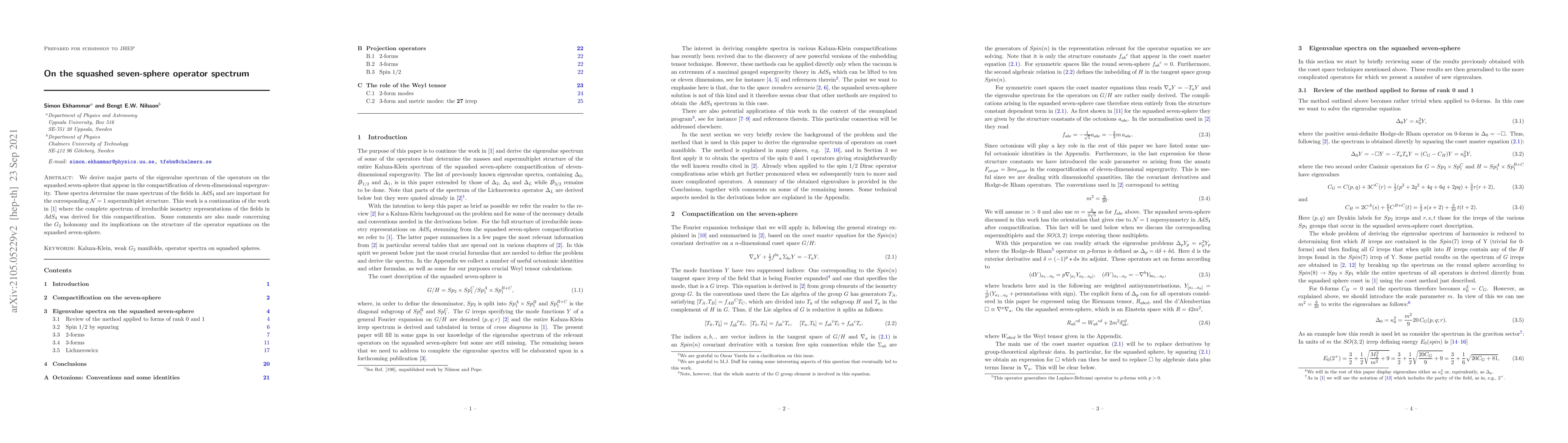 Researchers derive key parts of the eigenvalue spectrum of operators on the squashed seven-sphere, crucial for understanding mass spectra in $AdS_4$ supergravity theory.