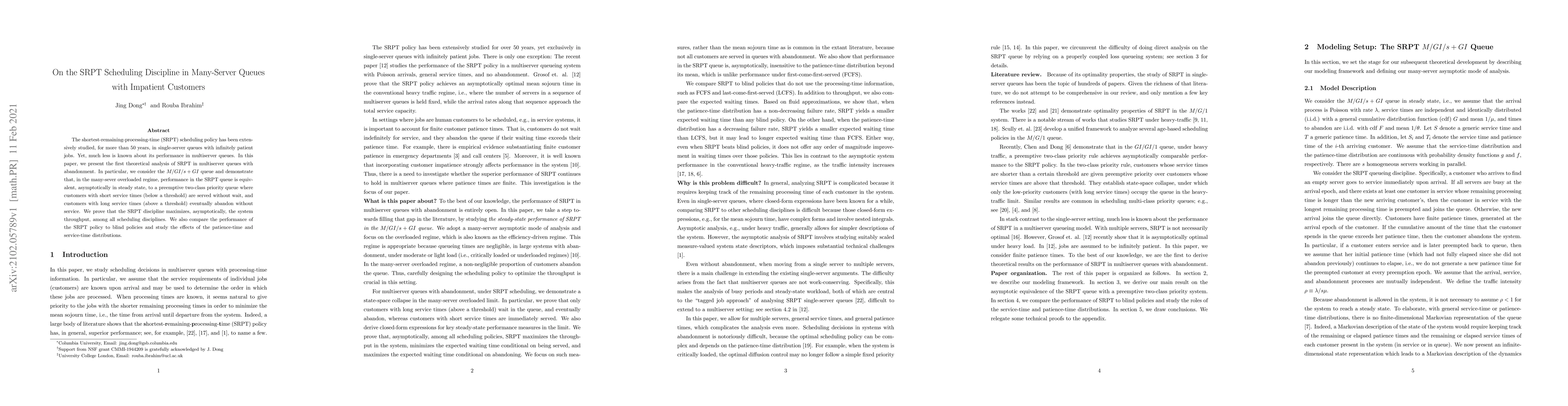 Introduces heavytraffic scaling limits for shortest remaining processing time queues