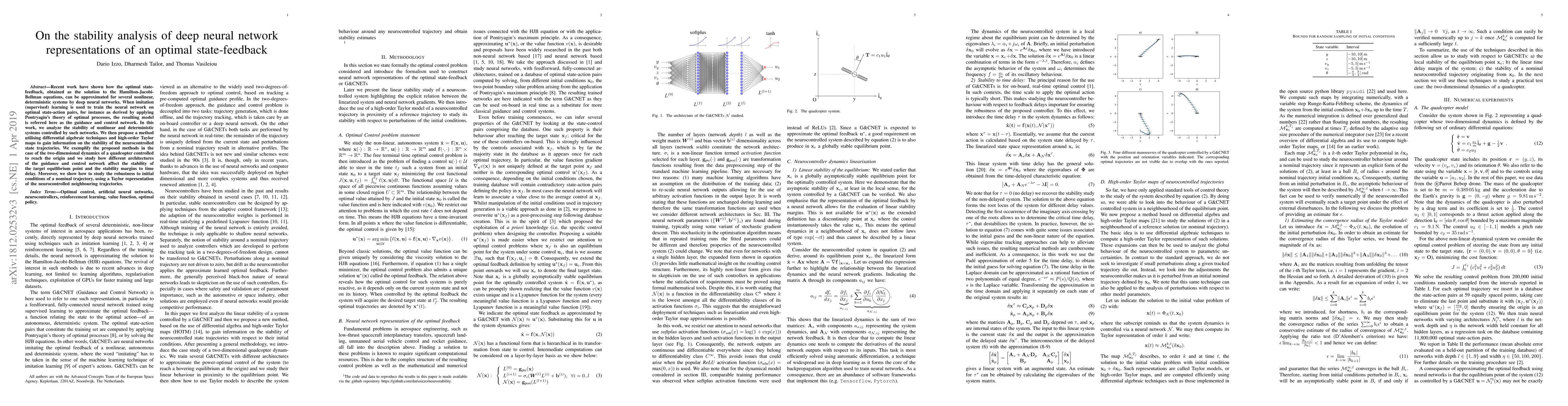 This paper investigates the stability of deep neural networks approximating optimal state-feedback for nonlinear systems, proposing a method using differential algebraic techniques and Taylor maps to analyze stability. It demonstrates the approach through a quadcopter's control, examining the impact of network architecture on stability and robustness to initial conditions.