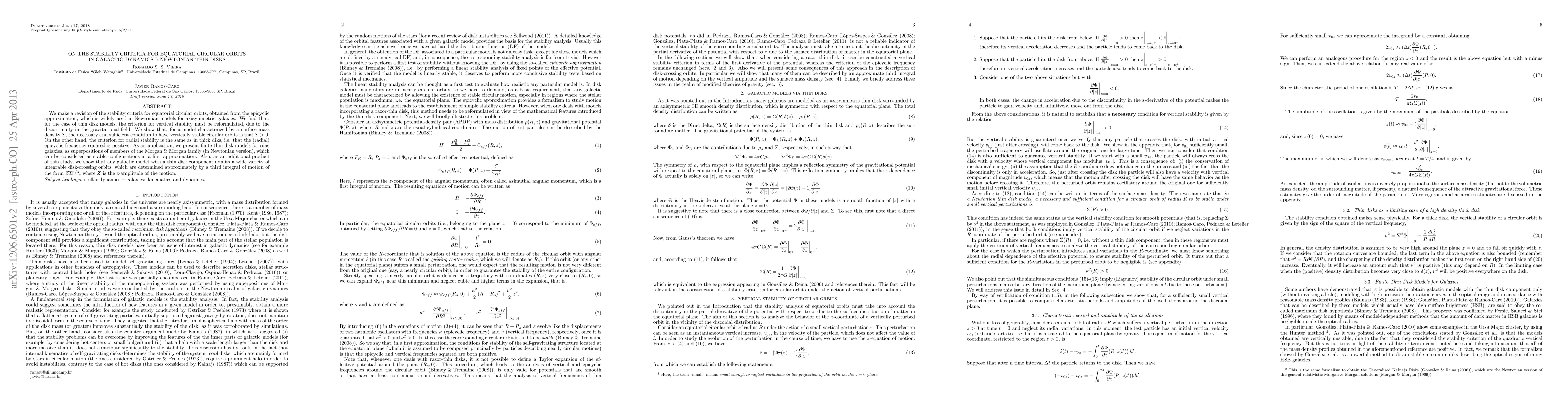 We make a revision of the stability criteria for equatorial circular orbits, obtained from the epicyclic approximation, which is widely used in Newtonian models for axisymmetric galaxies. We find that, for the case of thin disk models, the criteria of vertical stability must be reformulated, due to the discontinuity in the gravitational field. We show that, for a model characterized by a surface mass density $\Sigma$, the necessary and sufficient condition to have vertically stable orbits is that $\Sigma>0$. On the other hand, the criteria for radial stability is the same as in thick diks, i.e. that the epicyclic frequency is positive.