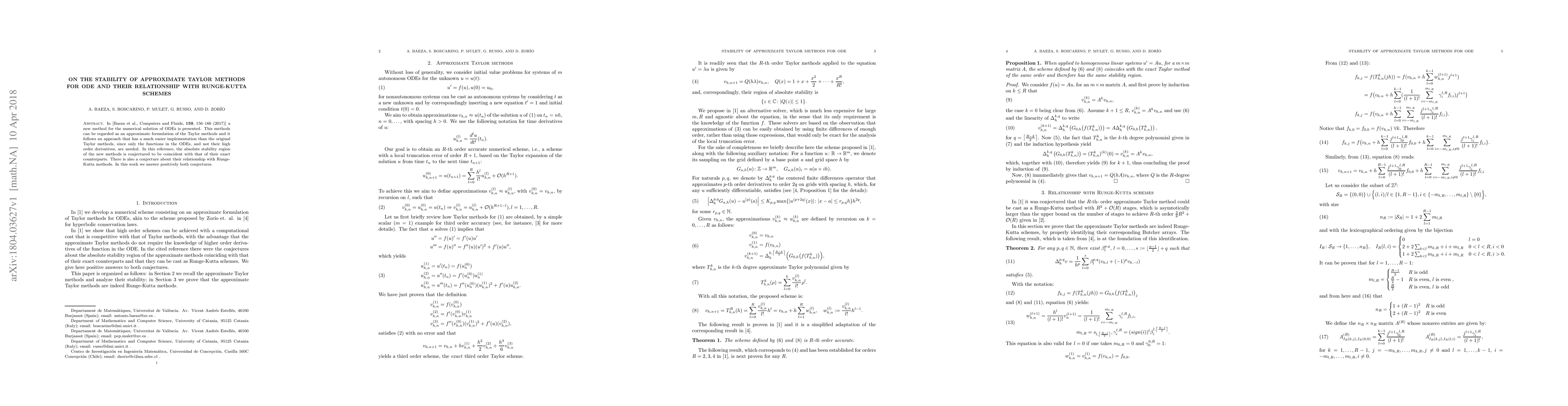 Researchers prove that approximate Taylor methods for solving Ordinary Differential Equations (ODEs) have identical stability regions to their exact counterparts and a specific relationship with Runge-Kutta schemes.