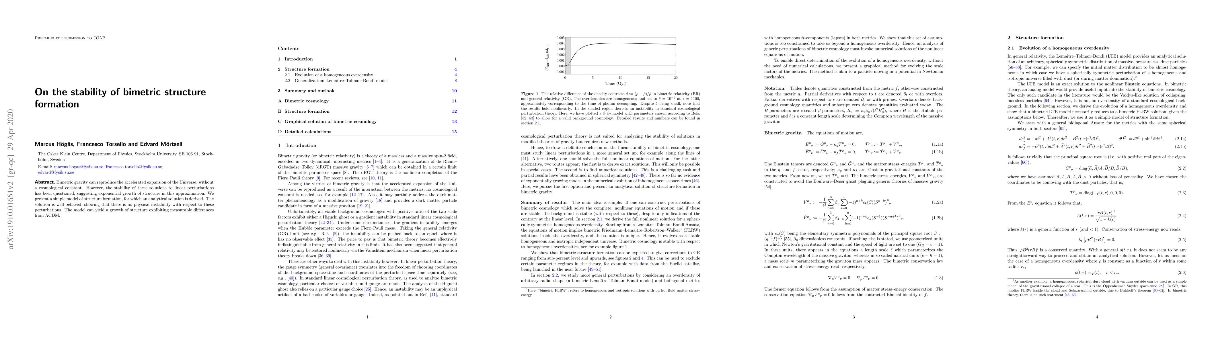 Bimetric gravity can reproduce the accelerated expansion of the Universe, without a cosmological constant. However, the stability of these solutions to linear perturbations has been questioned, suggesting exponential growth of structure in this approximation. We present a simple model of structure formation, for which an analytical solution is derived. The solution is well-behaved, showing that there is no physical instability with respect to these perturbations. The model can yield a growth of structure exhibiting measurable differences from $\Lambda$CDM.