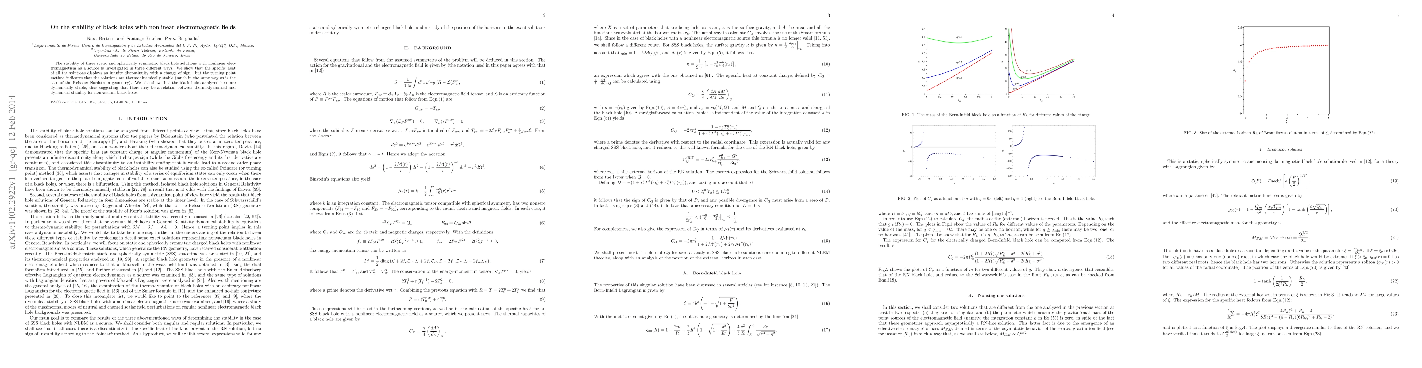 This paper investigates the stability of static, spherically symmetric black holes influenced by nonlinear electromagnetic fields. It finds infinite discontinuity in specific heat but concludes thermodynamic stability similar to Reissner-Nordstrom black holes, along with demonstrating dynamical stability, suggesting a possible link between thermodynamical and dynamical stability for such nonvacuum black holes.