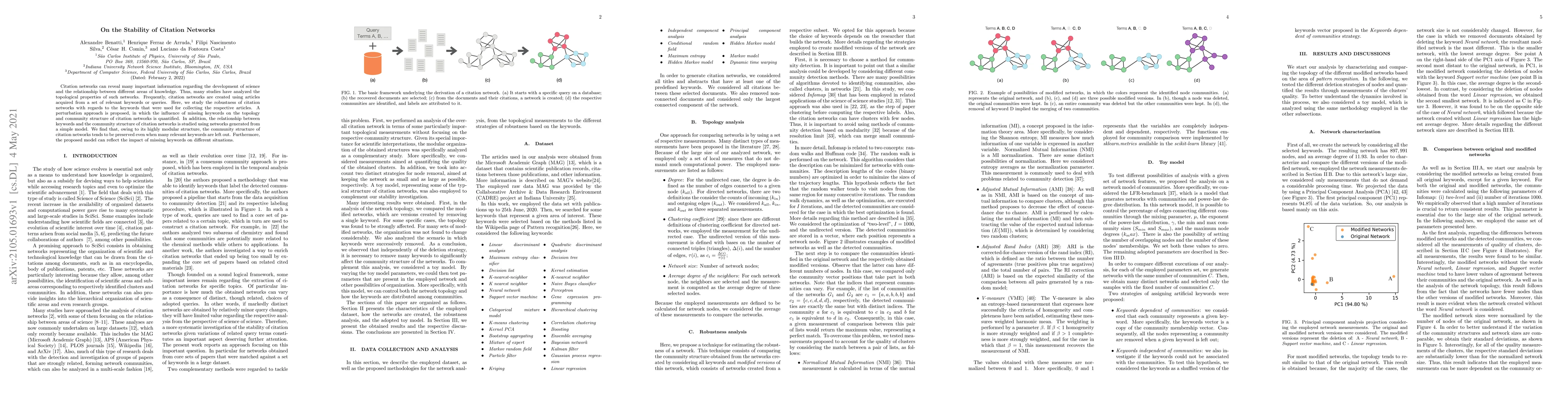 Citation networks can reveal many important information regarding the development of science and the relationship between different areas of knowledge. Thus, many studies have analyzed the topological properties of such networks. Frequently, citation networks are created using articles acquired from a set of relevant keywords or queries. Here, we study the robustness of citation networks with regards to the keywords that were used for collecting the respective articles. A perturbation approach is proposed, in which the influence of missing keywords on the topology and community structure of citation networks is quantified. In addition, the relationship between keywords and the community structure of citation networks is studied using networks generated from a simple model. We find that, owing to its highly modular structure, the community structure of citation networks tends to be preserved even when many relevant keywords are left out. Furthermore, the proposed model can reflect the impact of missing keywords on different situations.
