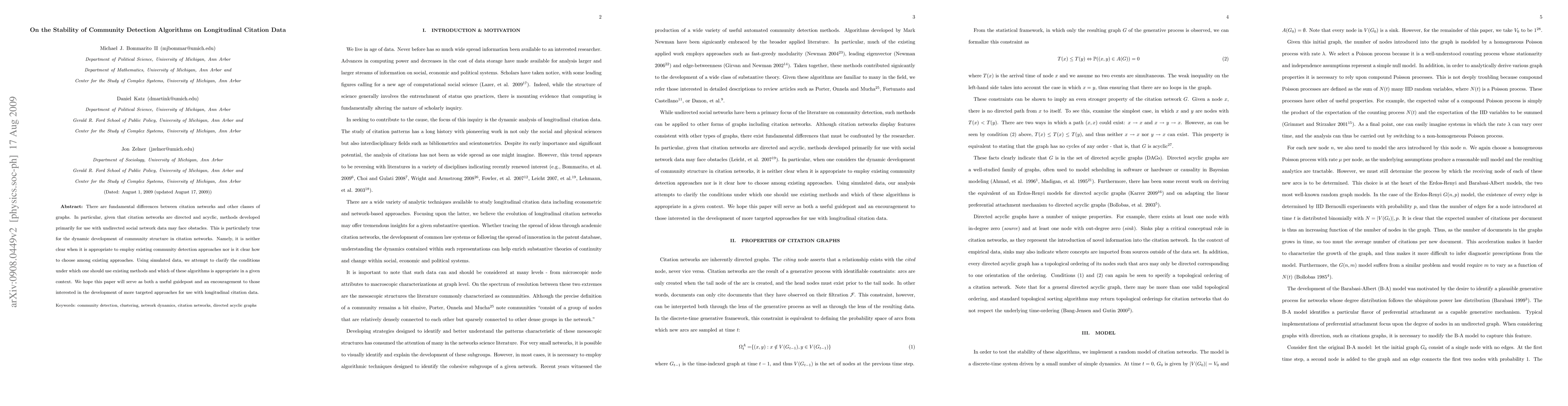 This paper investigates the stability of community detection algorithms when applied to longitudinal citation networks, highlighting the unique challenges posed by their directed and acyclic nature. Through simulated data analysis, the study aims to clarify the appropriate conditions for using existing methods and to encourage the development of more tailored approaches for citation network dynamics.