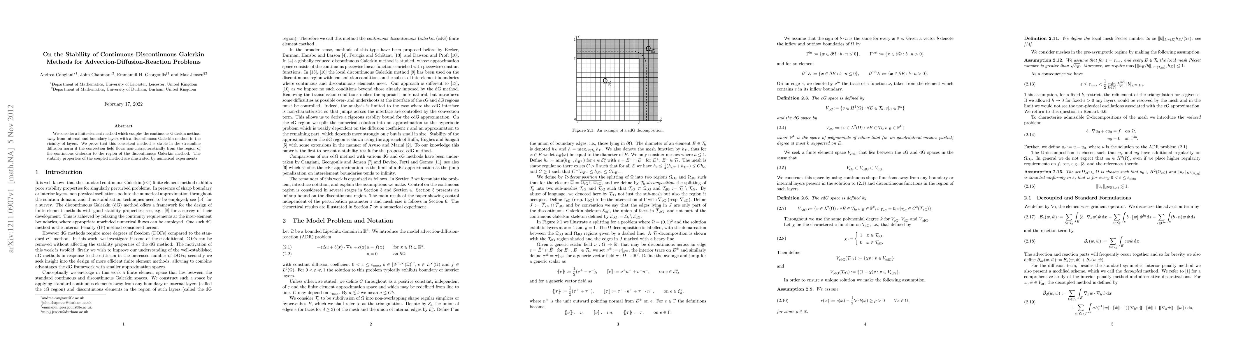 This paper investigates a hybrid finite element method combining continuous and discontinuous Galerkin techniques for solving advection-diffusion-reaction problems. The authors prove stability under non-characteristic convection conditions and demonstrate the method's effectiveness through numerical experiments.