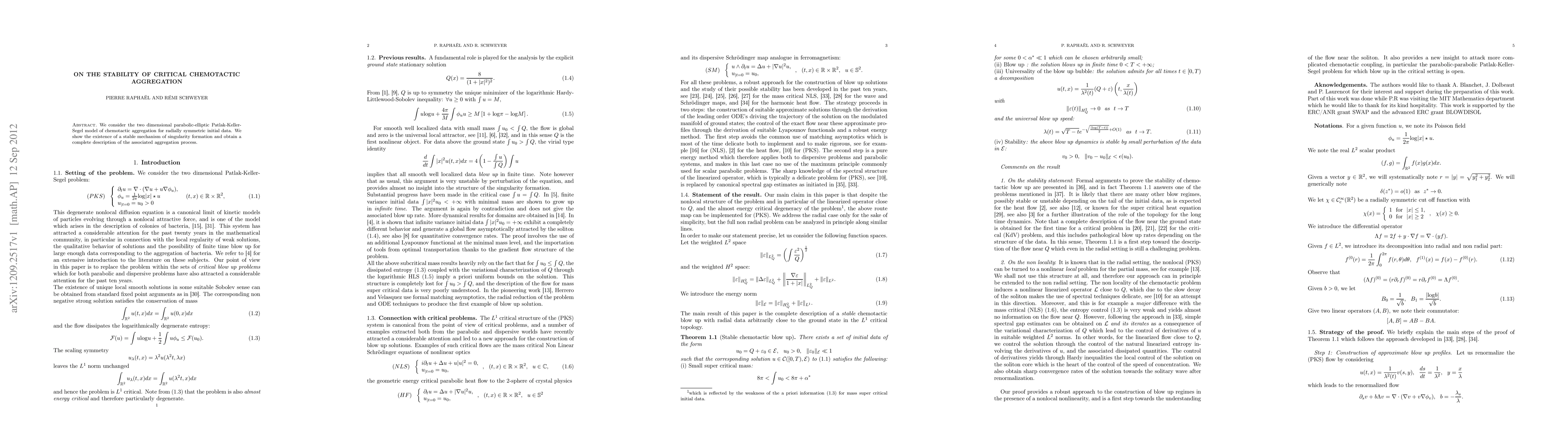 This paper investigates the stability of a chemotactic aggregation model in two dimensions, demonstrating the existence of a stable mechanism leading to singularity formation and provides a comprehensive description of the resulting aggregation process.