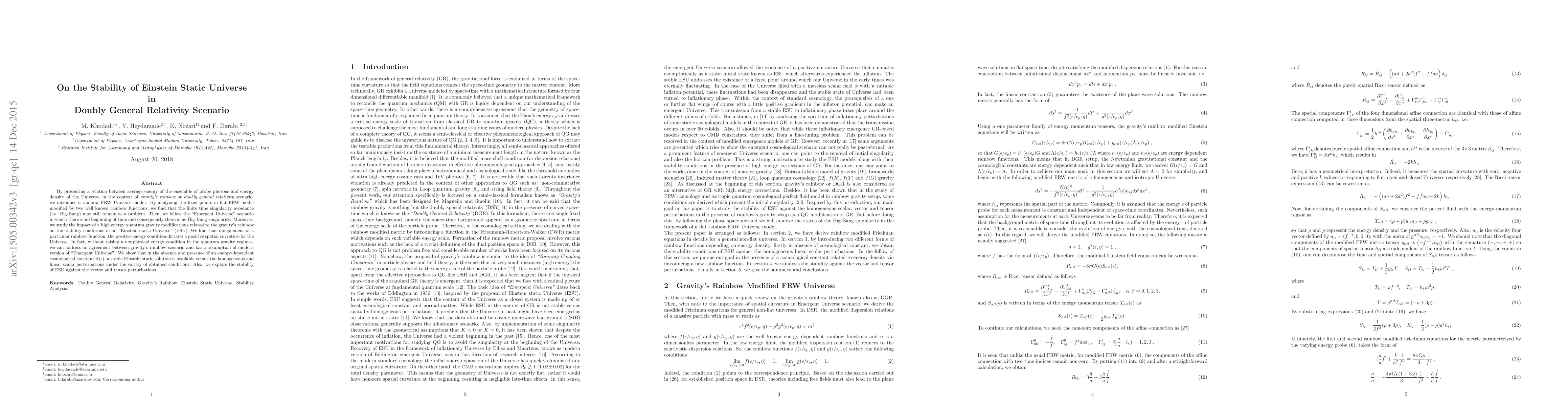 This paper explores the stability of the Einstein static universe within the framework of doubly general relativity, specifically the "gravity's rainbow" scenario. It finds that quantum gravity modifications necessitate a positive spatial curvature and suggests a stable Einstein static solution under various perturbations, aligning with the Emergent Universe model.