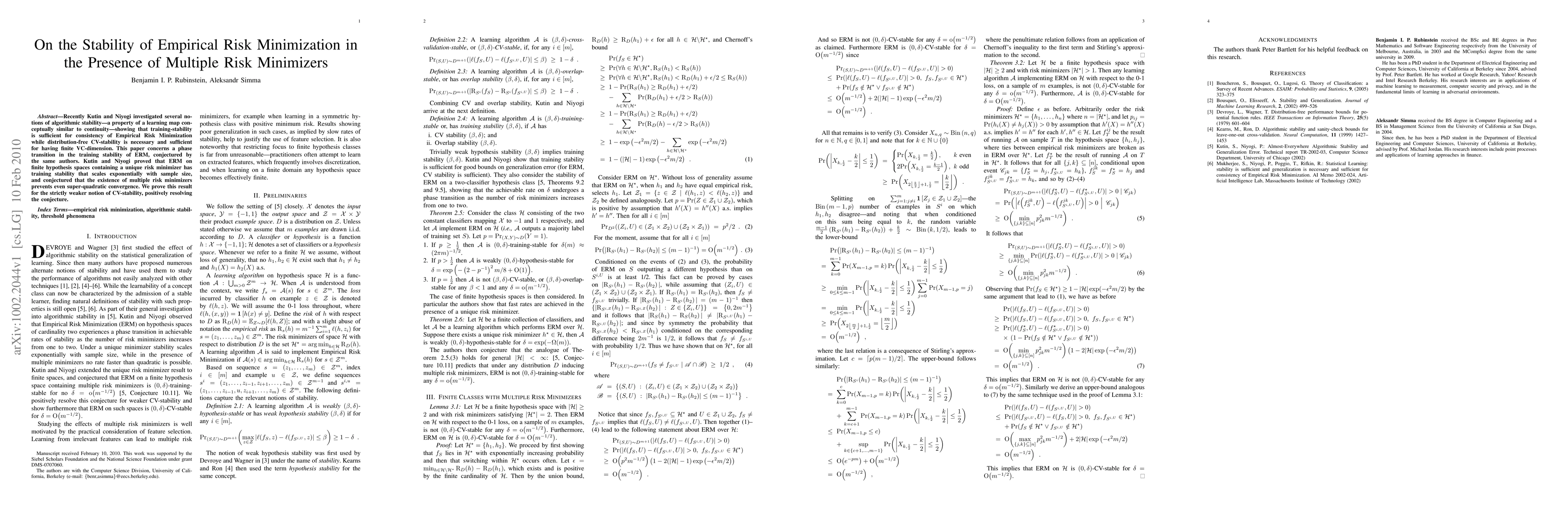 This paper proves that the existence of multiple risk minimizers in Empirical Risk Minimization (ERM) prevents super-quadratic convergence, resolving a conjecture by Kutin and Niyogi regarding training stability. The authors show that even CV-stability, a weaker notion, does not suffice for such convergence.