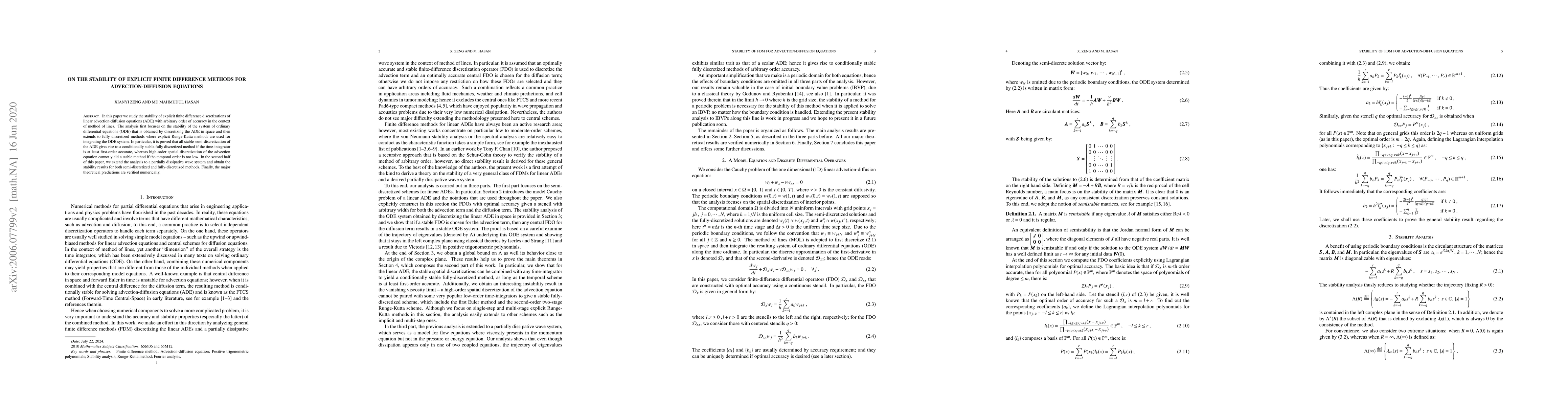 This paper investigates the stability of explicit finite difference methods for linear advection-diffusion equations, proving that conditionally stable semi-discretizations lead to conditionally stable fully discretized methods with first-order time integrators, while high-order spatial discretizations cannot ensure stability if temporal accuracy is low. Numerical verification supports the theoretical findings.
