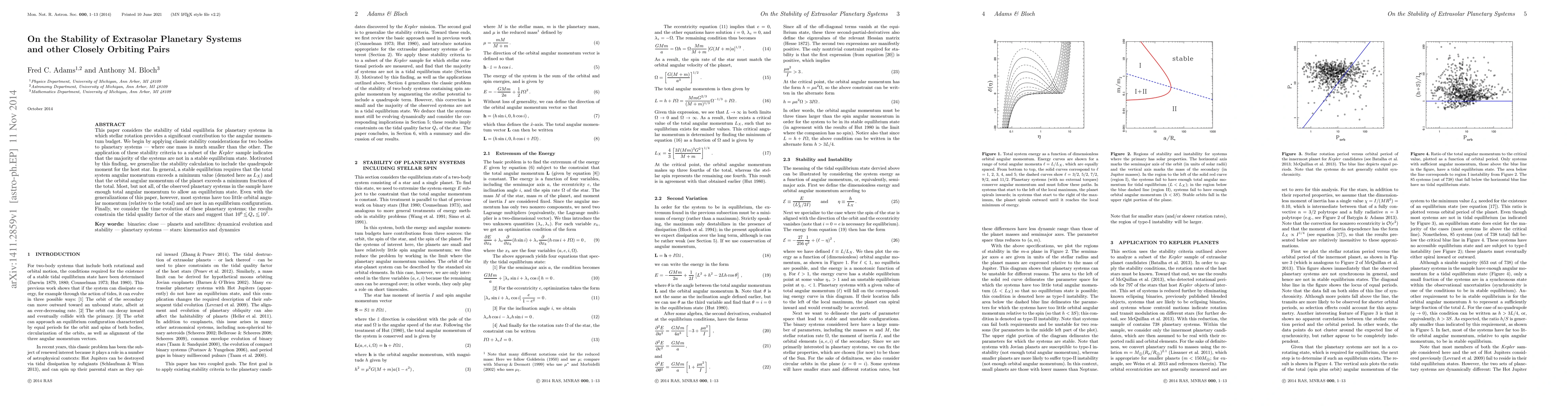 This paper considers the stability of tidal equilibria for planetary systems in which stellar rotation provides a significant contribution to the angular momentum budget. We begin by applying classic stability considerations for two bodies to planetary systems --- where one mass is much smaller than the other. The application of these stability criteria to a subset of the Kepler sample indicates that the majority of the systems are not in a stable equilibrium state. Motivated by this finding, we generalize the stability calculation to include the quadrupole moment for the host star. In general, a stable equilibrium requires that the total system angular momentum exceeds a minimum value (denoted here as $L_X$) and that the orbital angular momentum of the planet exceeds a minimum fraction of the total. Most, but not all, of the observed planetary systems in the sample have enough total angular momentum to allow an equilibrium state. Even with the generalizations of this paper, however, most systems have too little orbital angular momentum (relative to the total) and are not in an equilibrium configuration. Finally, we consider the time evolution of these planetary systems; the results constrain the tidal quality factor of the stars and suggest that $10^6\le{Q_\ast}\le10^7$.