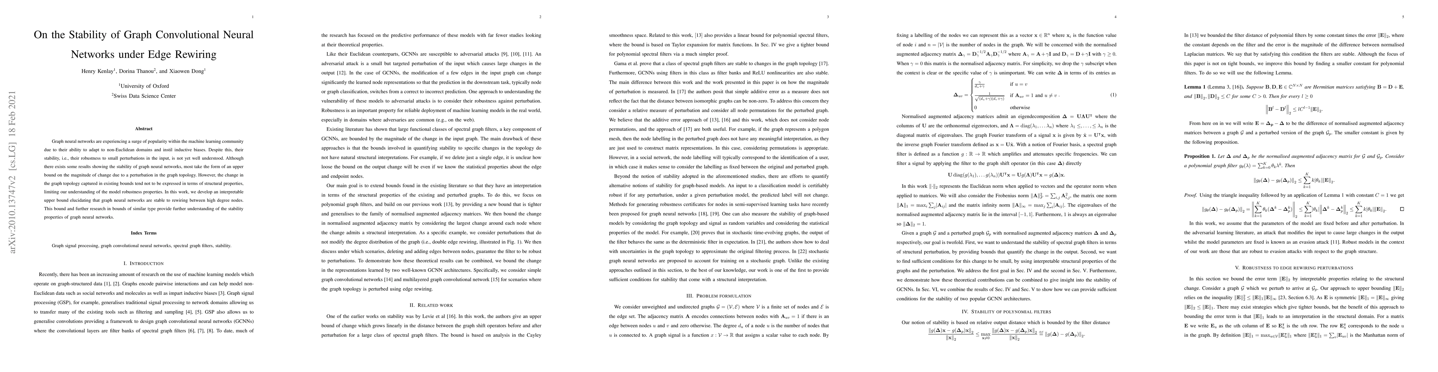 This paper investigates the stability of graph convolutional neural networks under edge rewiring, developing an interpretable upper bound that shows stability for rewiring between high degree nodes, thus enhancing our understanding of the robustness of these networks to structural changes.