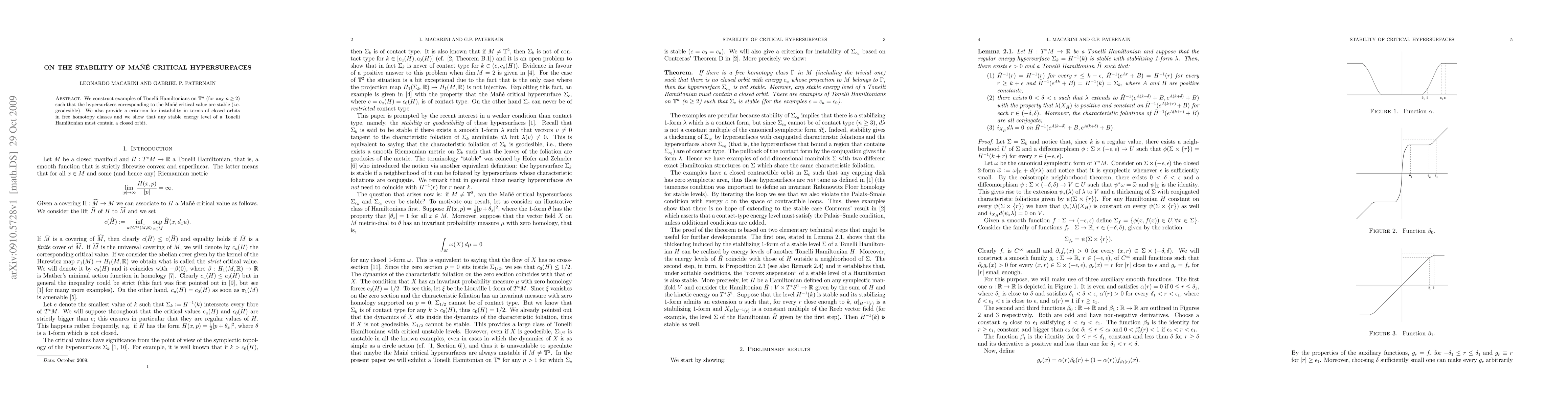 This paper constructs examples of Tonelli Hamiltonians on $\T^n$ where Ma\~n\'e critical hypersurfaces are stable (geodesible) and provides a criterion for instability linked to closed orbits, concluding that stable energy levels must contain closed orbits.