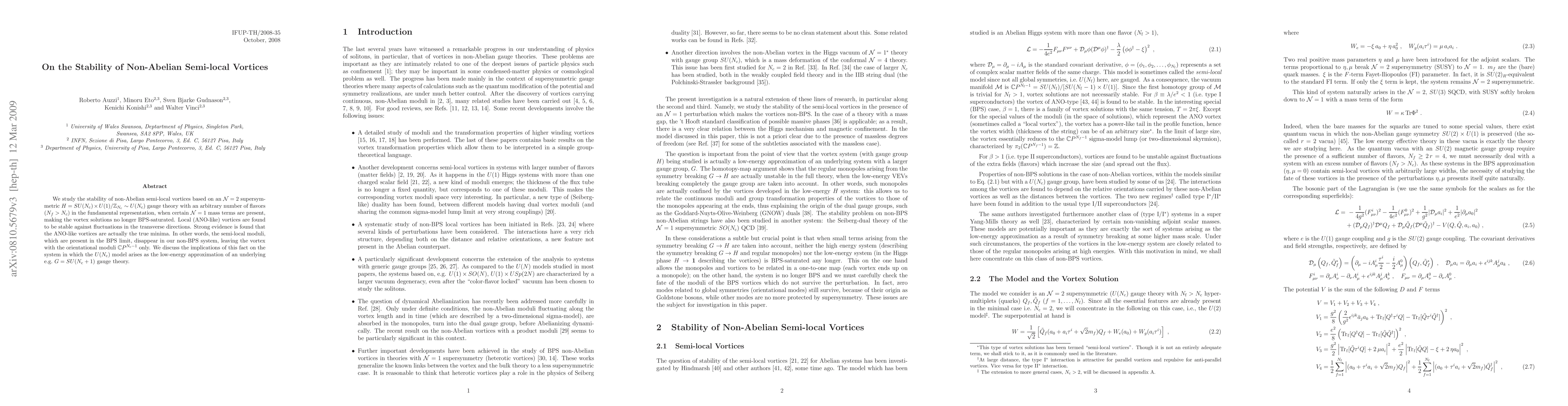 This paper investigates the stability of non-Abelian semi-local vortices in an N=2 supersymmetric gauge theory with U(Nc) symmetry and an arbitrary number of flavors, finding that local vortices are stable and act as true minima. It concludes that semi-local moduli vanish in the non-BPS limit, leaving only CP(Nc-1) orientational moduli.