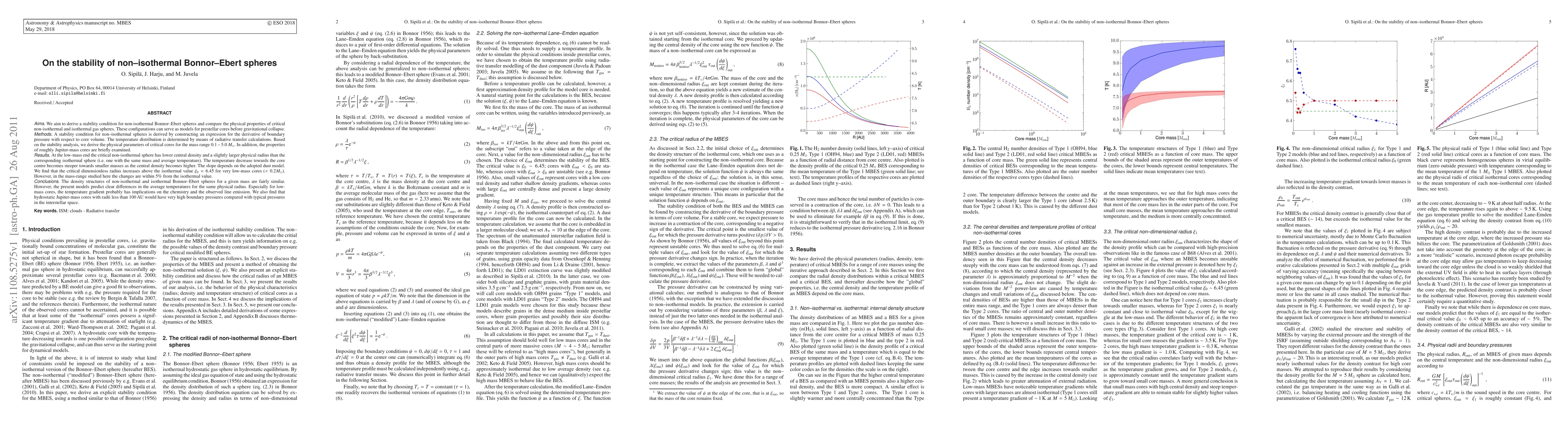 This paper derives a stability condition for non-isothermal Bonnor-Ebert spheres and compares their physical properties with isothermal spheres, finding that low-mass non-isothermal spheres have lower central densities and steeper temperature gradients, which may affect chemistry and emission. Hydrostatic Jupiter-mass cores with small radii exhibit high boundary pressures.