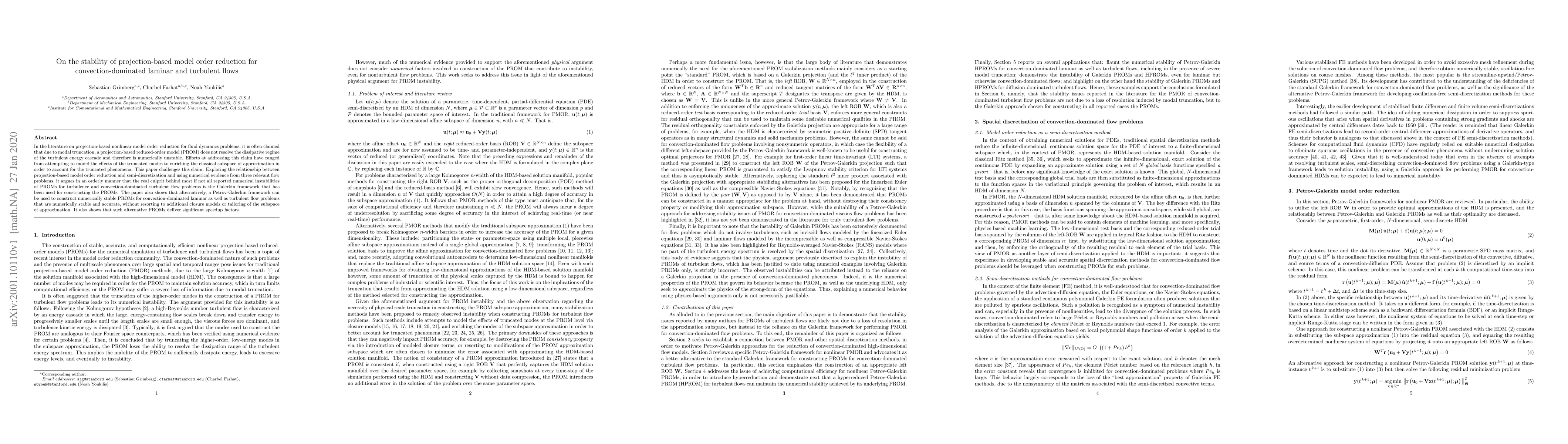 In the literature on projection-based nonlinear model order reduction for fluid dynamics problems, it is often claimed that due to modal truncation, a projection-based reduced-order model (PROM) does not resolve the dissipative regime of the turbulent energy cascade and therefore is numerically unstable. Efforts at addressing this claim have ranged from attempting to model the effects of the truncated modes to enriching the classical subspace of approximation in order to account for the truncated phenomena. This paper challenges this claim. Exploring the relationship between projection-based model order reduction and semi-discretization and using numerical evidence from three relevant flow problems, it argues in an orderly manner that the real culprit behind most if not all reported numerical instabilities of PROMs for turbulence and convection-dominated turbulent flow problems is the Galerkin framework that has been used for constructing the PROMs. The paper also shows that alternatively, a Petrov-Galerkin framework can be used to construct numerically stable PROMs for convection-dominated laminar as well as turbulent flow problems that are numerically stable and accurate, without resorting to additional closure models or tailoring of the subspace of approximation. It also shows that such alternative PROMs deliver significant speedup factors.
