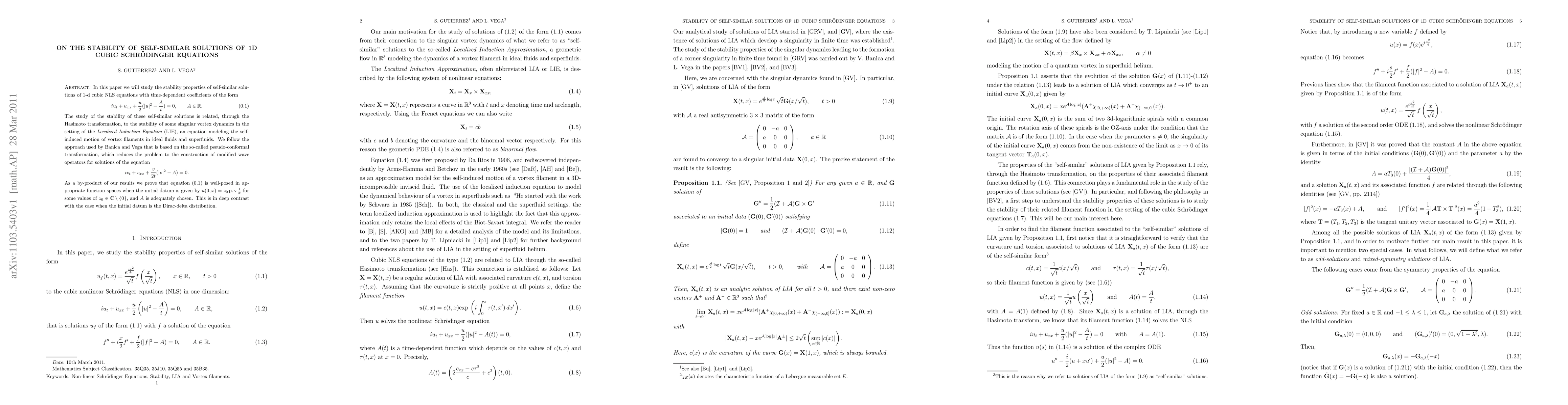 This paper studies the stability of self-similar solutions to a 1D cubic Schrodinger equation with time-dependent coefficients, finding that it is well-posed in certain function spaces under specific initial conditions.