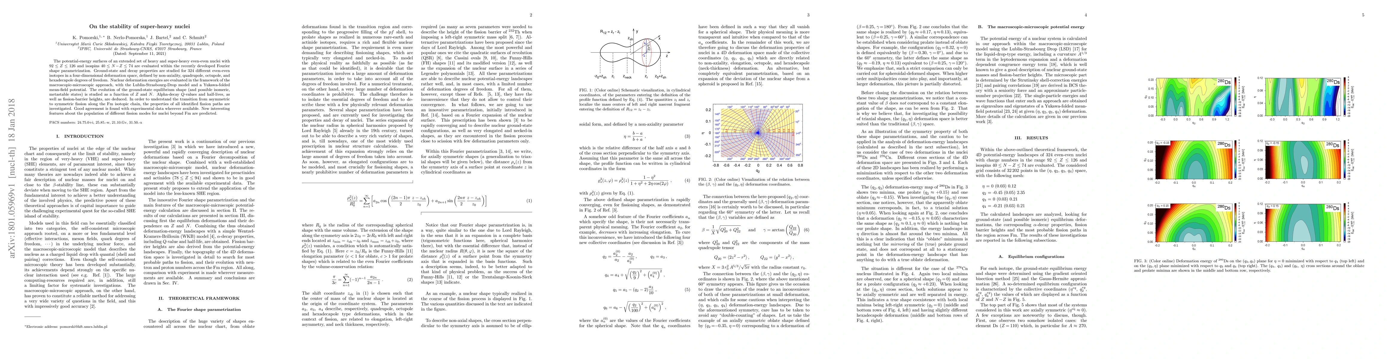 This paper evaluates the stability and decay properties of super-heavy nuclei using a Fourier shape parametrization and macroscopic-microscopic approach, predicting new fission modes and showing good agreement with experimental data. It investigates the evolution of nuclear shapes and fission barriers for isotopes along the Fm chain.