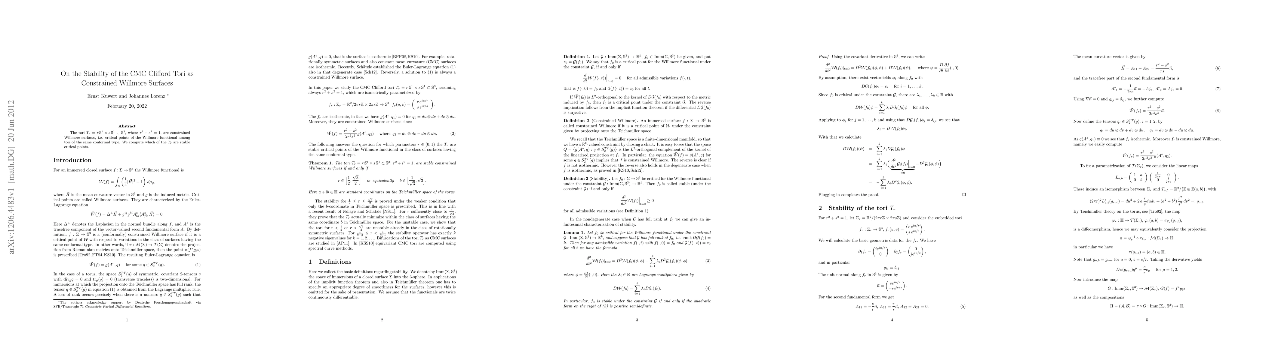 The tori $T_r = r S^1 \times s S^1 \subset S^3$, where $r^2 + s^2 = 1$, are constrained Willmore surfaces, i.e. critical points of the Willmore functional among tori of the same conformal type. We compute which of the $T_r$ are stable critical points.