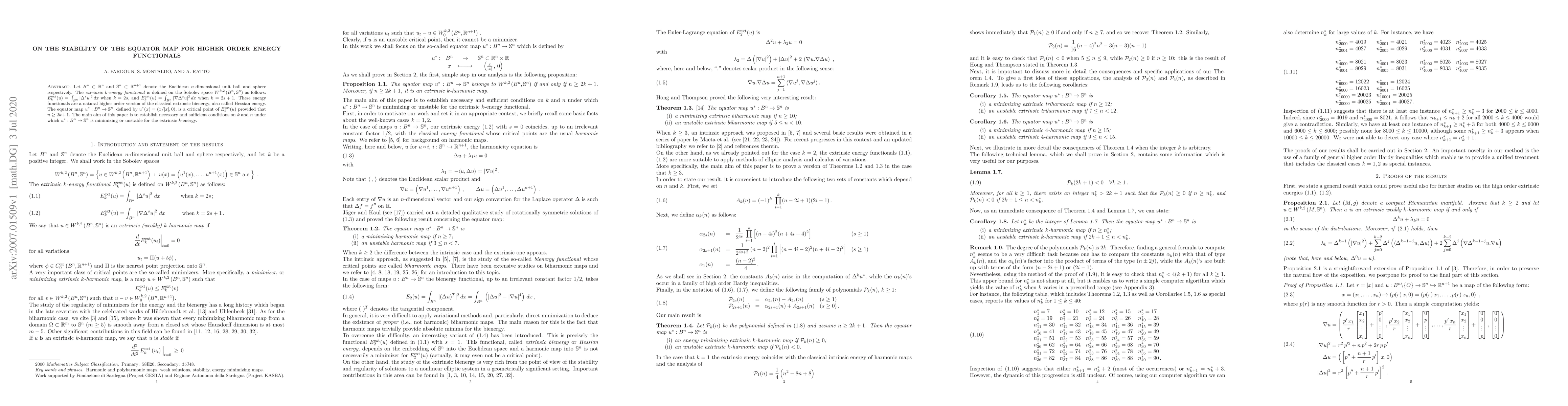 This paper studies the stability of a map defined on the Euclidean unit ball and sphere for higher-order energy functionals, aiming to establish conditions for minimization or instability based on parameters k and n.