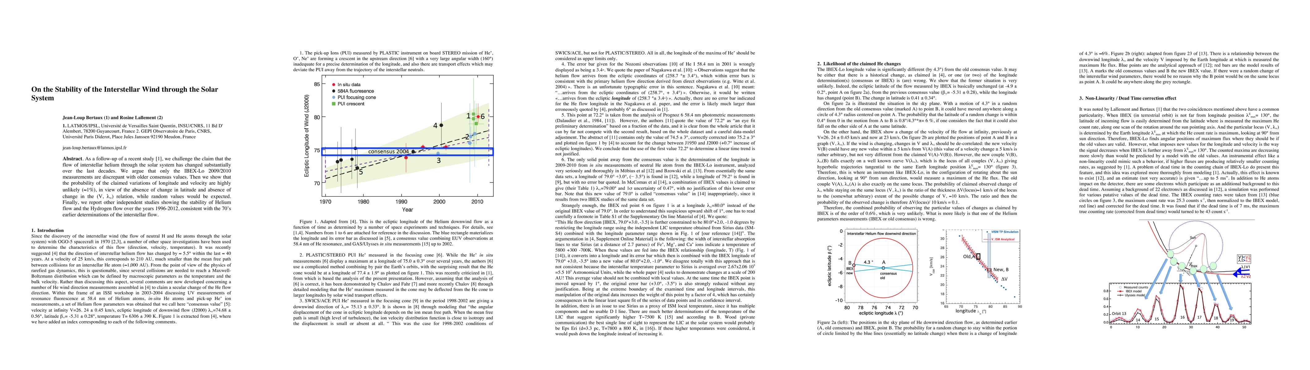 As a follow-up of a recent study, we challenge the claim that the flow of interstellar helium through the solar system has changed substantially over the last decades. We argue that only the IBEX-Lo 2009-2010 measurements are discrepant with older consensus values. Then we show that the probability of the claimed variations of longitude and velocity are highly unlikely (about 1 per cent), in view of the absence of change in latitude and absence of change in the (flow velocity, flow longitude) relation, while random values would be expected. Finally, we report other independent studies showing the stability of Helium flow and the Hydrogen flow over the years 1996-2012, consistent with the seventies earlier determinations of the interstellar flow.