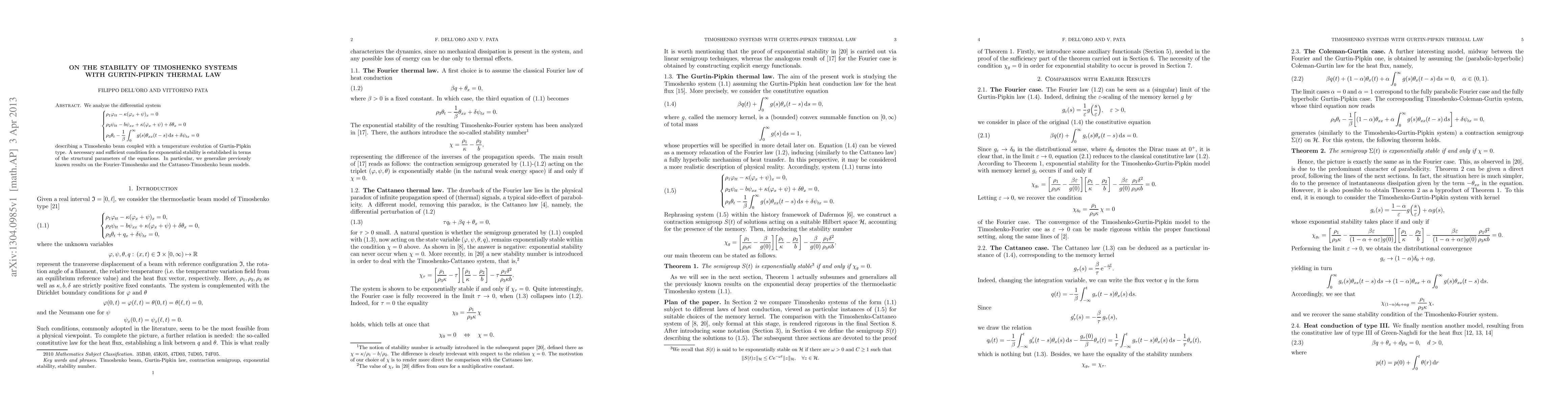 This paper investigates the stability of Timoshenko beam systems coupled with Gurtin-Pipkin thermal dynamics, establishing a necessary and sufficient condition for exponential stability. It generalizes existing stability results for Fourier-Timoshenko and Cattaneo-Timoshenko models.
