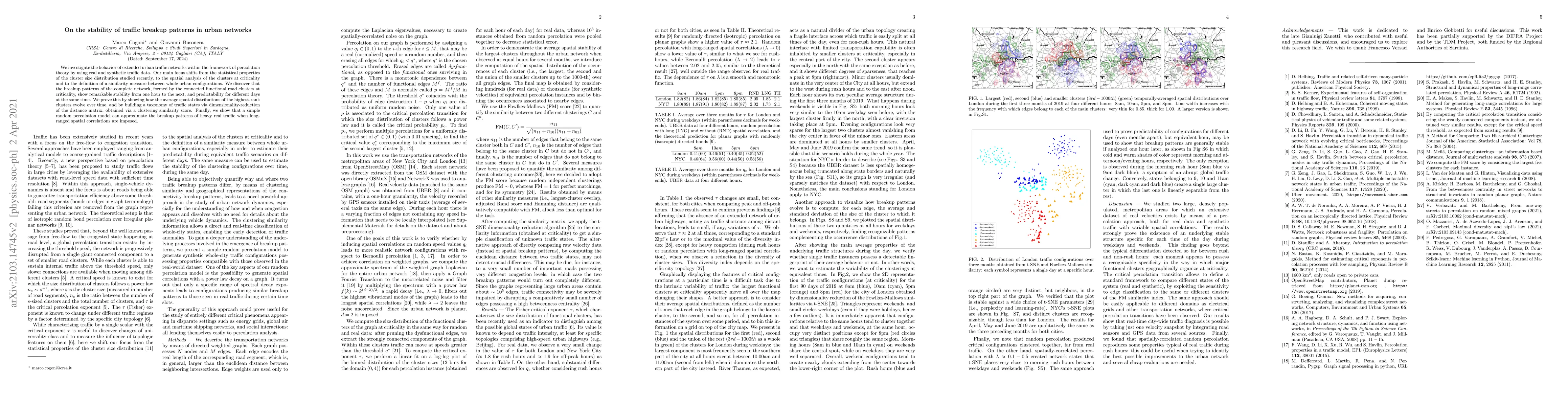 The work presents a novel application of percolation theory to urban traffic networks, highlighting the importance of considering spatial correlations in traffic patterns.