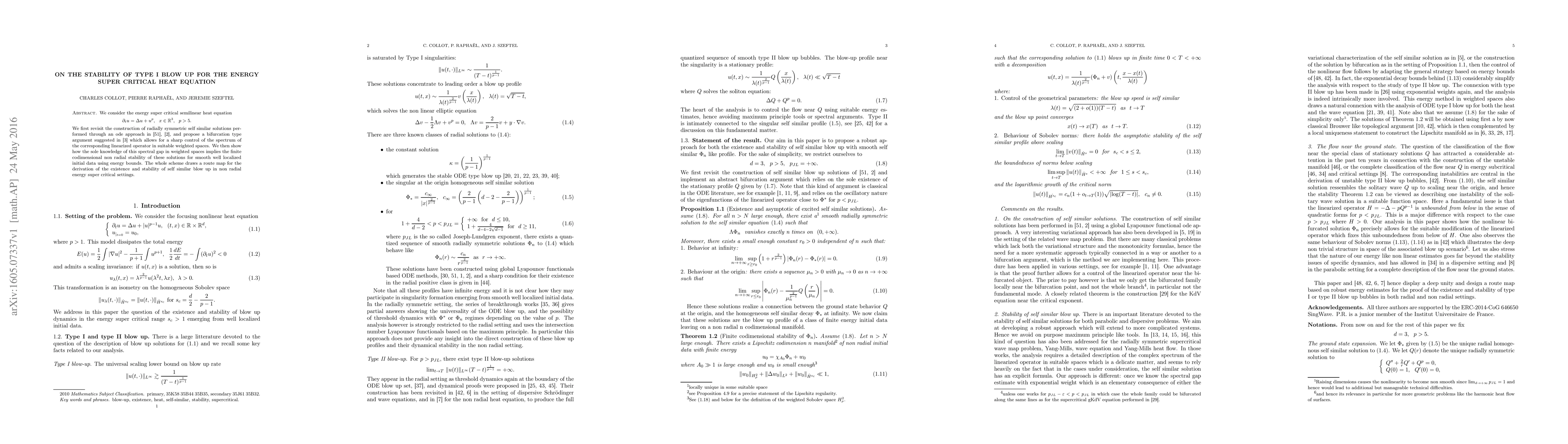 We consider the energy super critical semilinear heat equation $$\partial_t u=\Delta u+u^{p}, \ \ x\in \mathbb R^3, \ \ p>5.$$ We first revisit the construction of radially symmetric backward self similar solutions and propose a bifurcation type argument which allows for a sharp control of the spectrum of the corresponding linearized operator in suitable weighted spaces. We then show how the sole knowledge of this spectral gap in weighted spaces implies the finite codimensional non radial stability of these solutions for smooth well localized initial data using energy bounds. The whole scheme draws a route map for the derivation of the existence and stability of self similar blow up in non radial energy super critical settings.