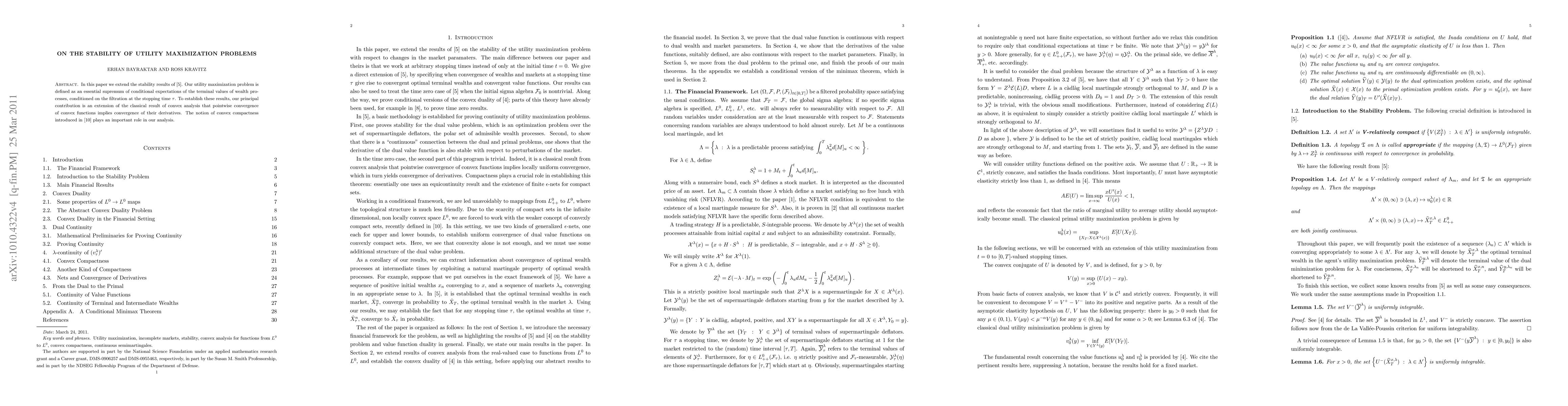 In this paper we extend the stability results of [4]}. Our utility maximization problem is defined as an essential supremum of conditional expectations of the terminal values of wealth processes, conditioned on the filtration at the stopping time $\tau$. To establish our results, we extend the classical results of convex analysis to maps from $L^0$ to $L^0$. The notion of convex compactness introduced in [7] plays an important role in our analysis.