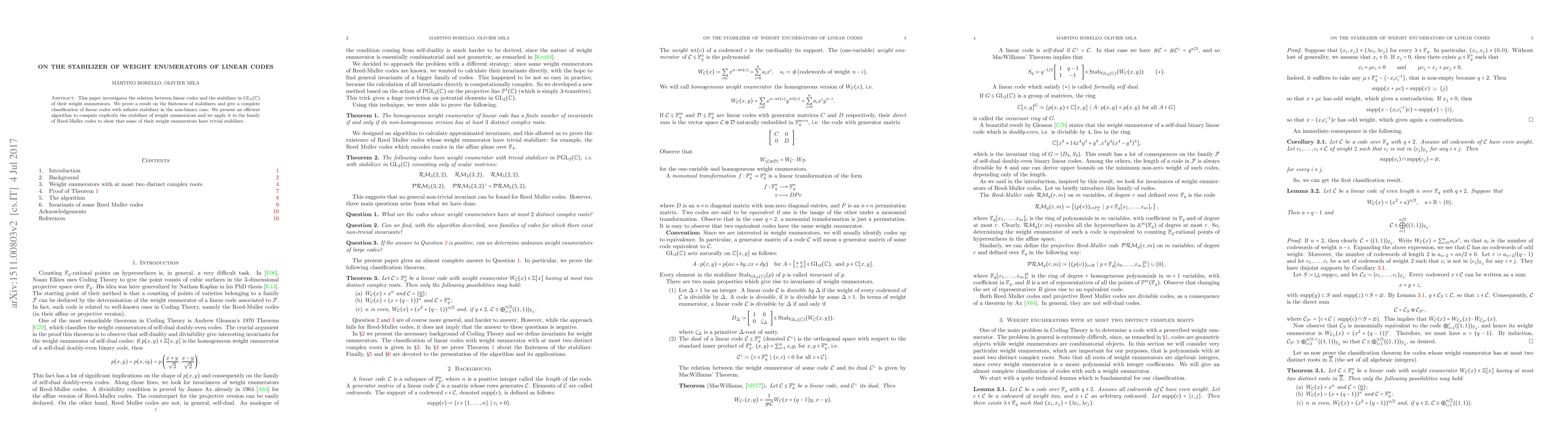 This paper investigates the relation between linear codes and the stabilizer in ${\rm GL}_2(\mathbb{C})$ of their weight enumerators. We prove a result on the finiteness of stabilizers and give a complete classification of linear codes with infinite stabilizer in the non-binary case. We present an efficient algorithm to compute explicitly the stabilizer of weight enumerators and we apply it to the family of Reed-Muller codes to show that some of their weight enumerators have trivial stabilizer.