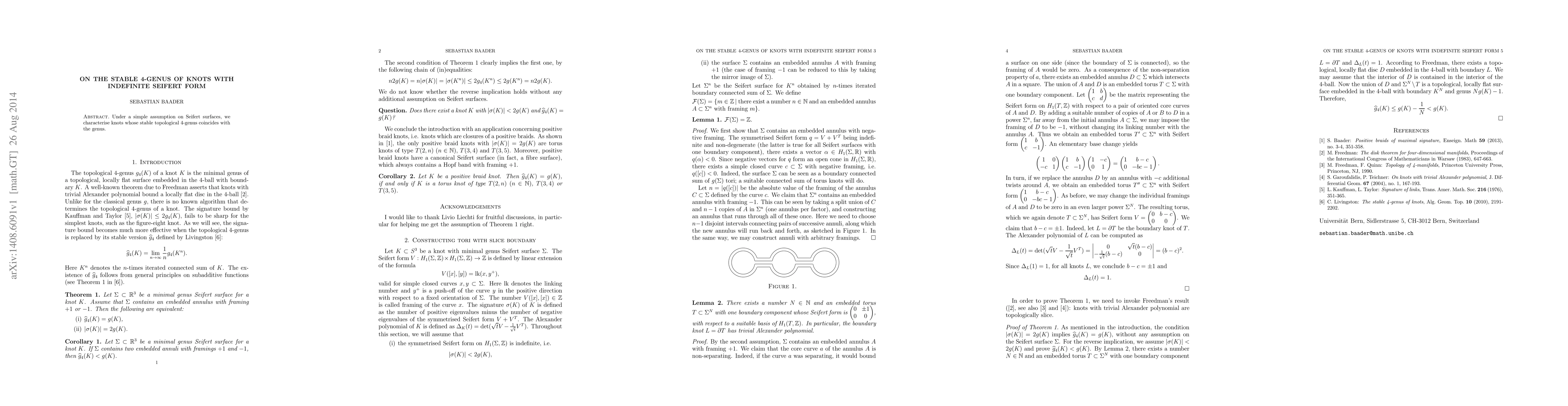 This paper characterizes knots whose stable topological 4-genus matches their genus under a specific assumption on their Seifert surfaces. The study highlights the relationship between the knot's stable 4-genus and its Seifert form.